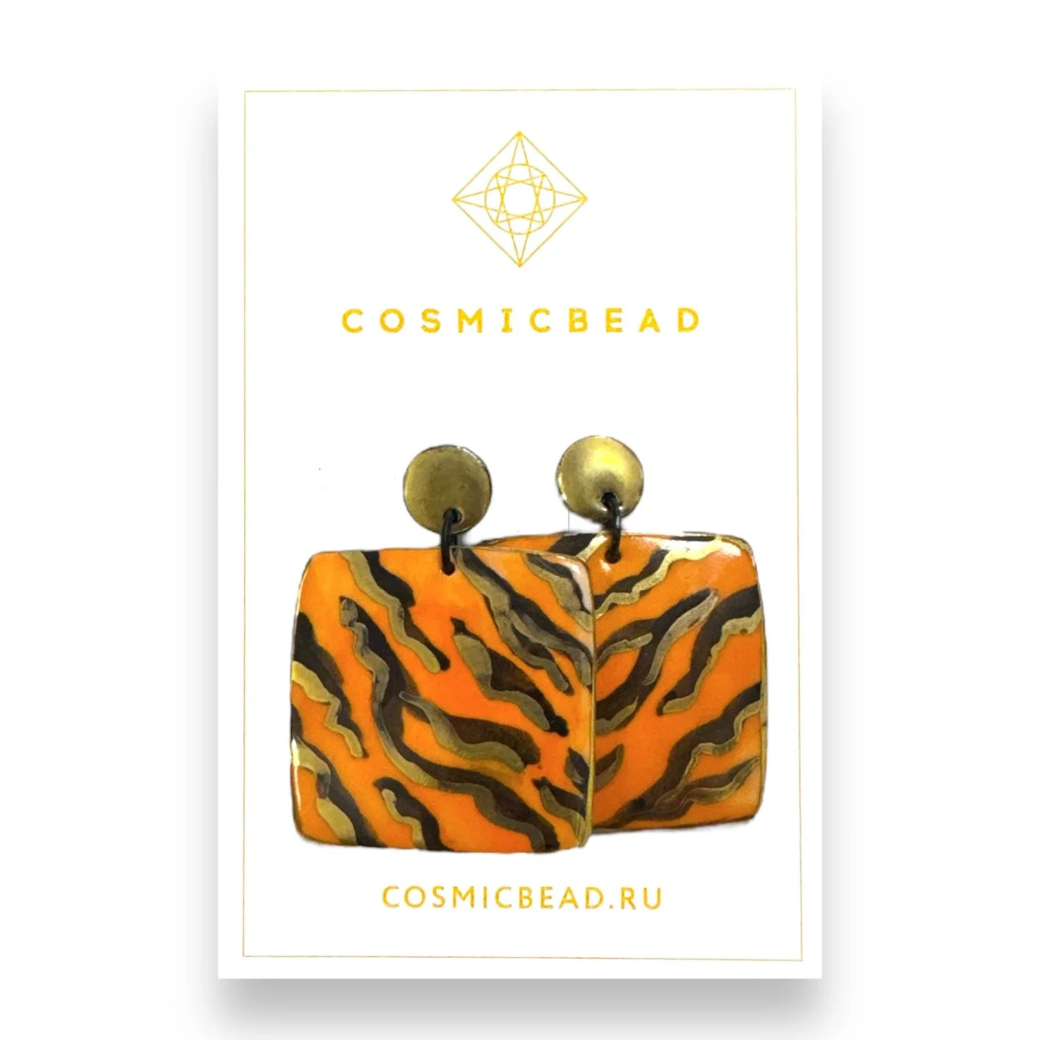 Фарфоровые серьги-гвоздики с принтом «Тигр» и позолотой ручной работы.