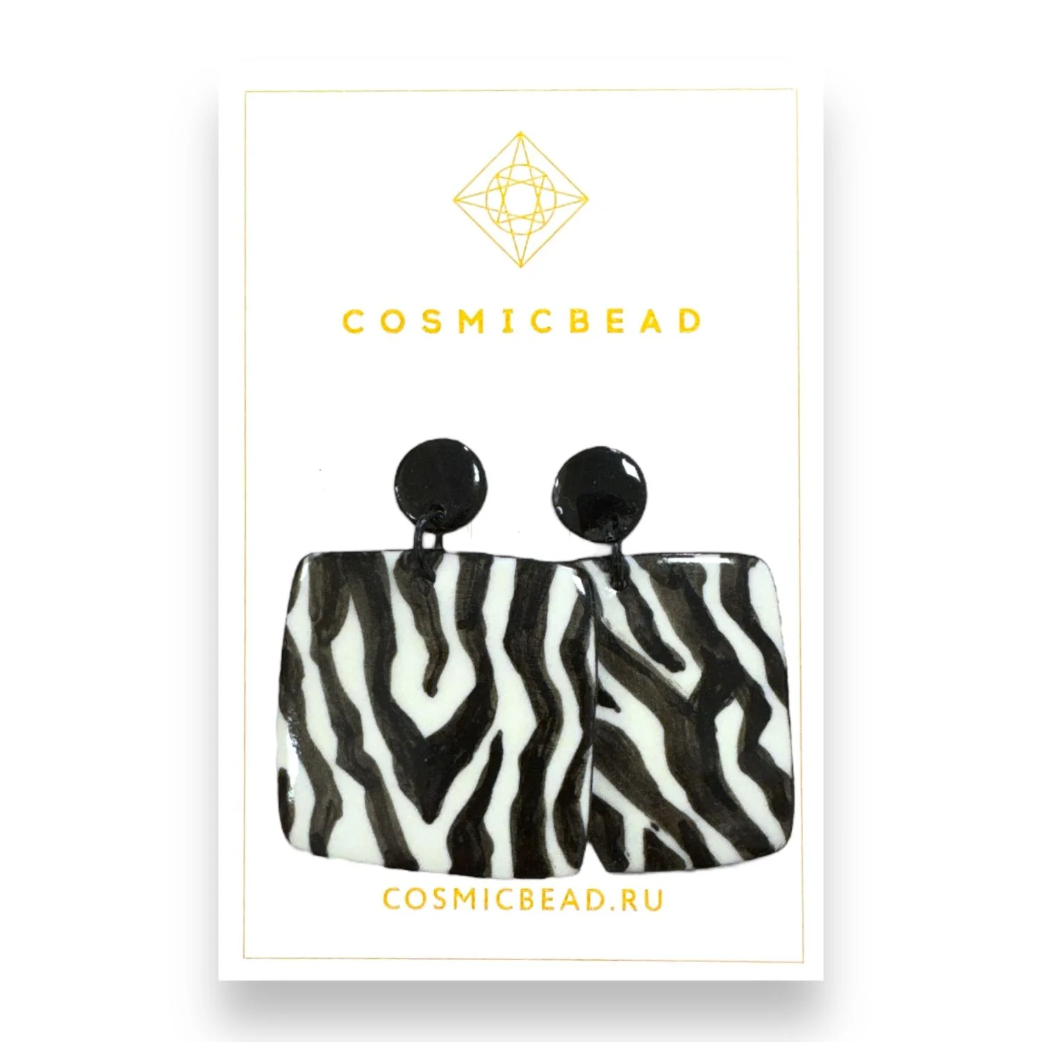 Фарфоровые серьги-гвоздики с принтом «Зебра» ручной работы.