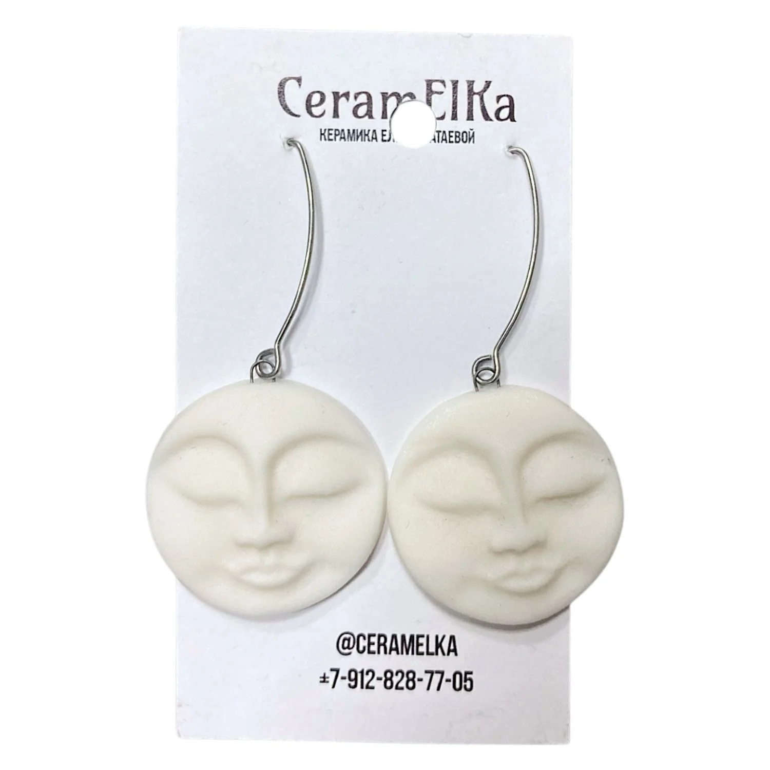 Серьги КерамЕлКа «Лица», фарфор, белые матовые
