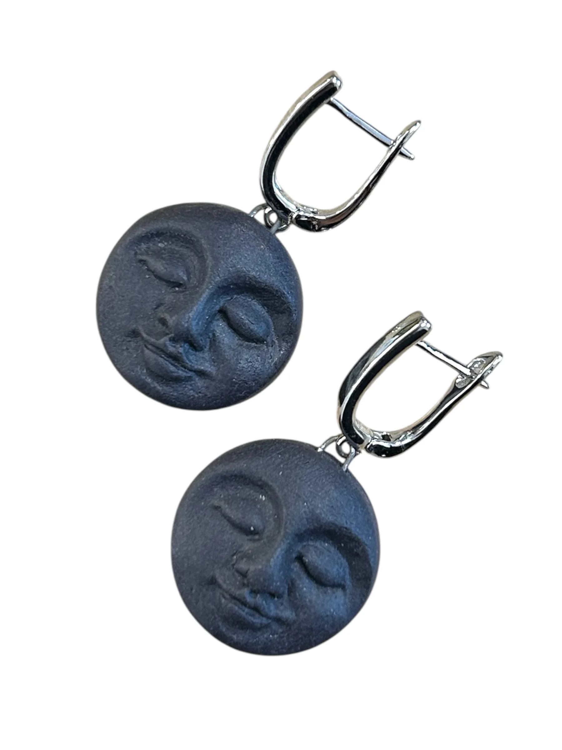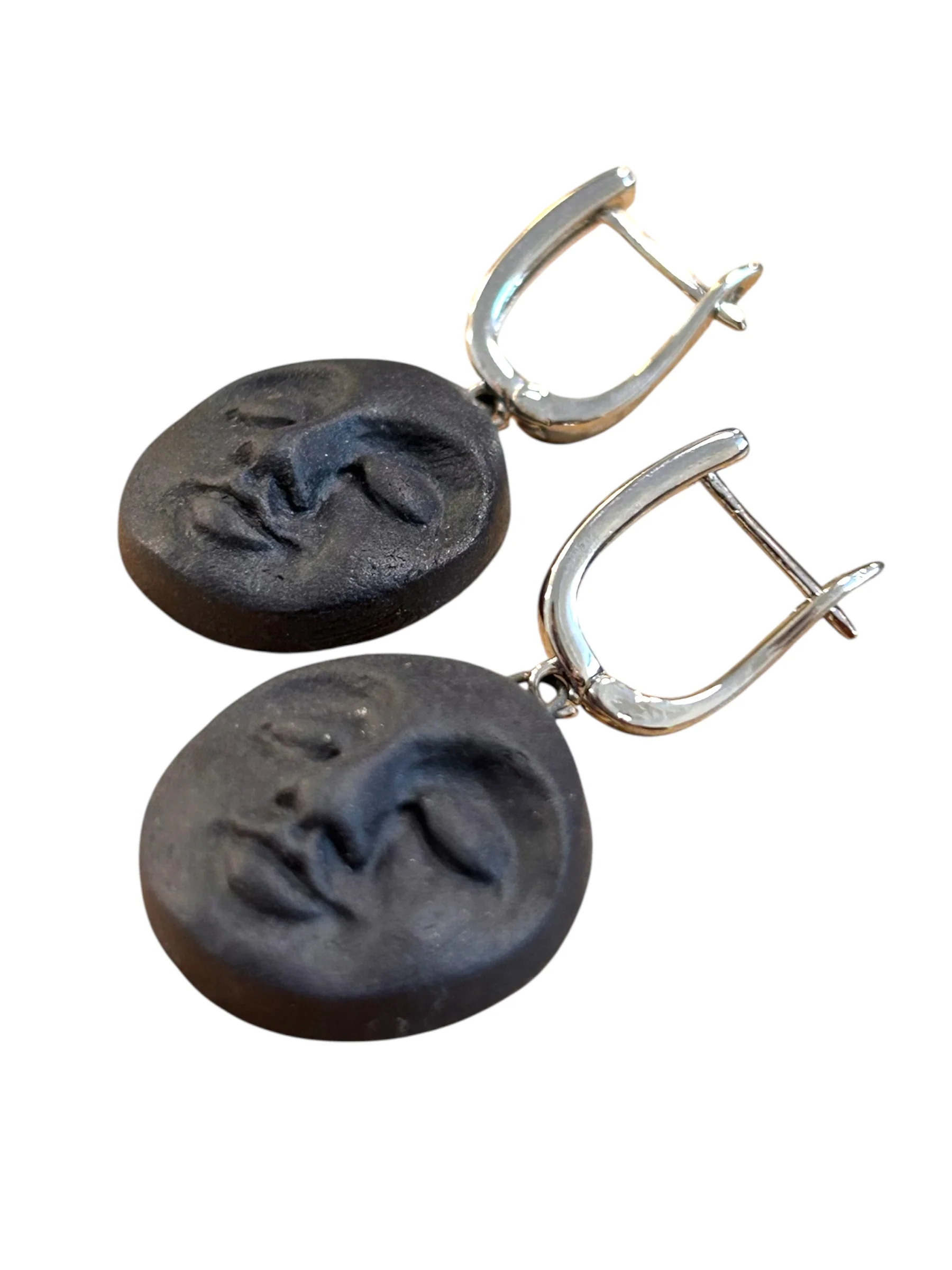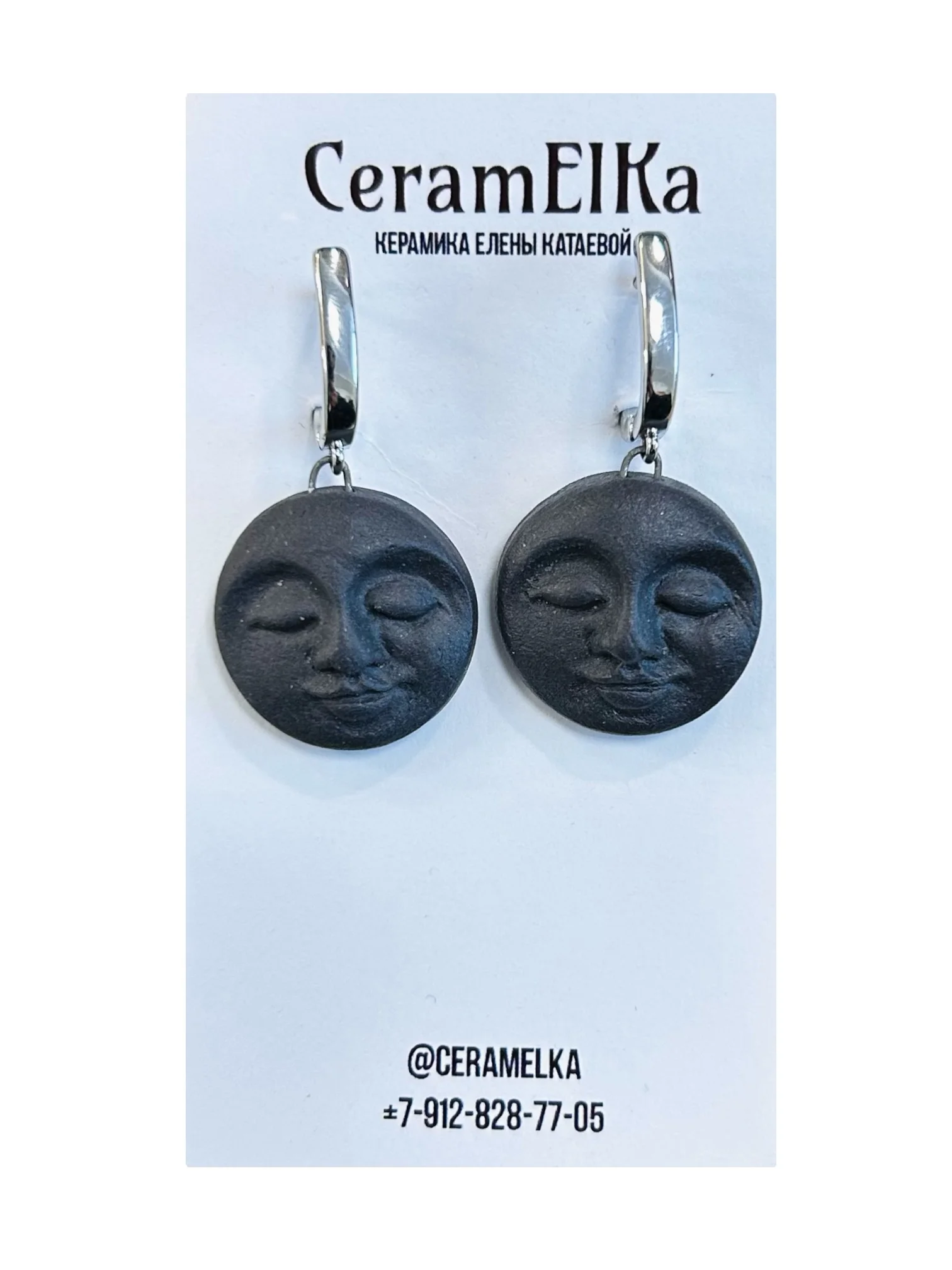 Серьги КерамЕлКа «Лица», фарфор, чёрные, матовые