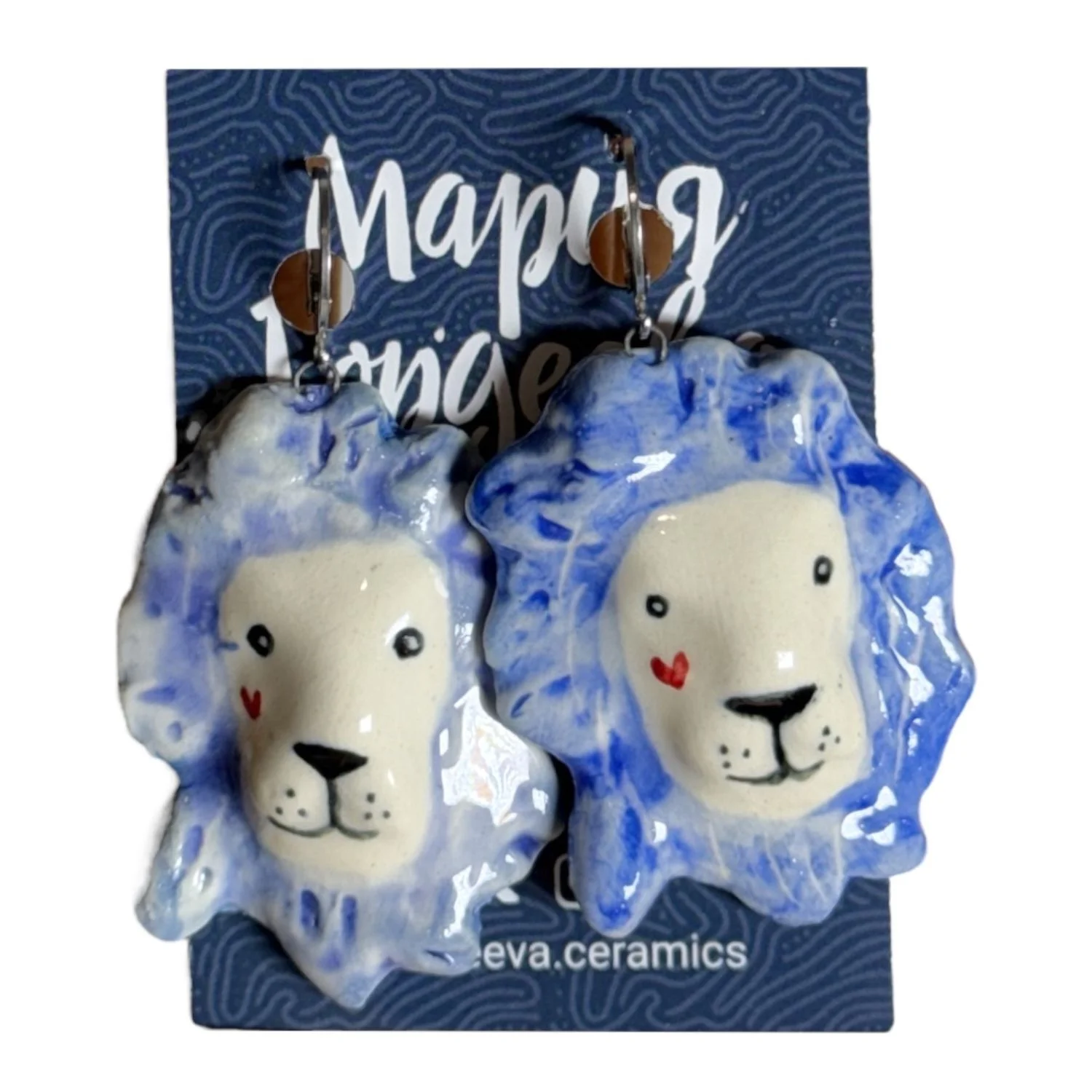 Серьги Мария Гордеева «Львы», керамика, голубые