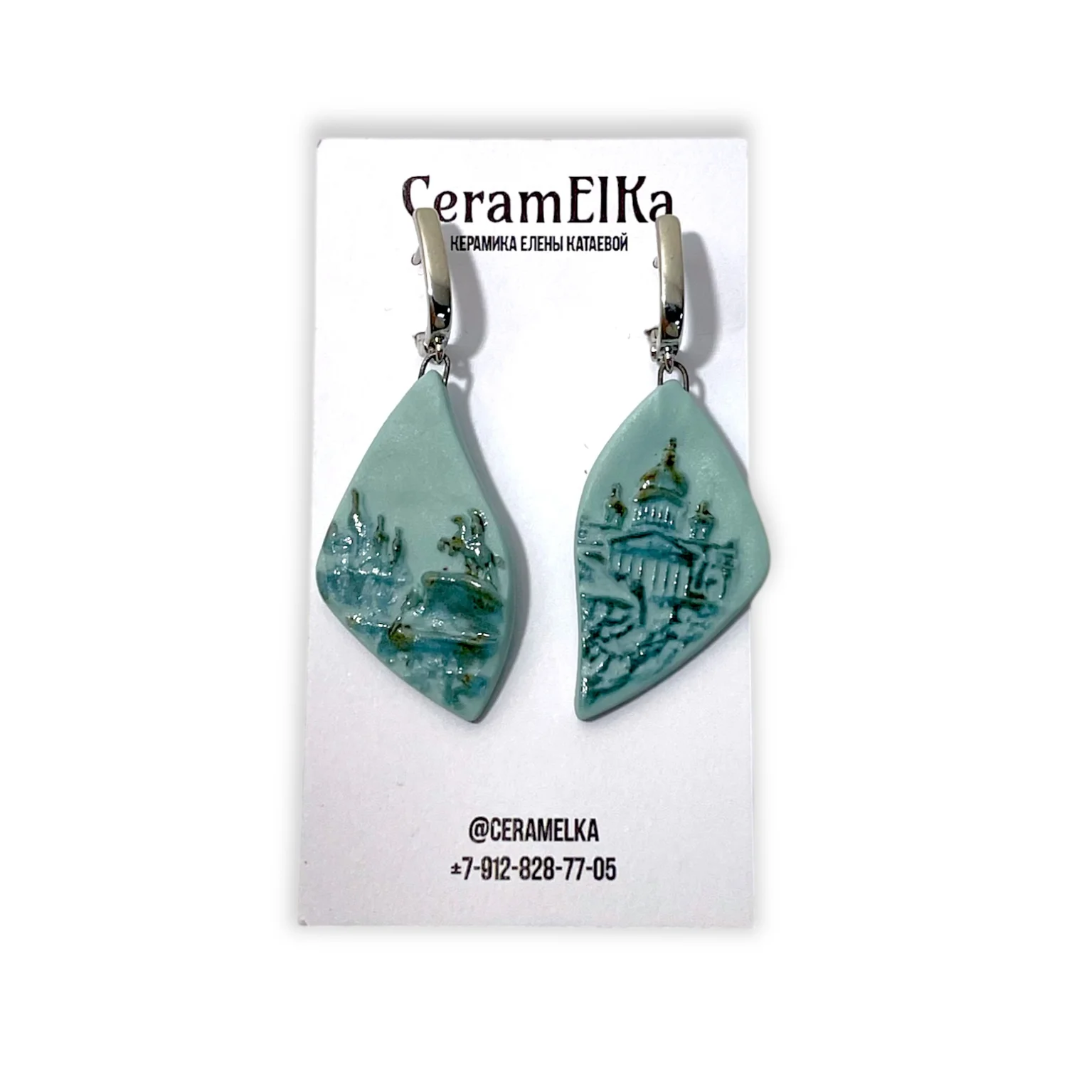 Серьги КерамЕлКа «Медный всадник», фарфор, мятные