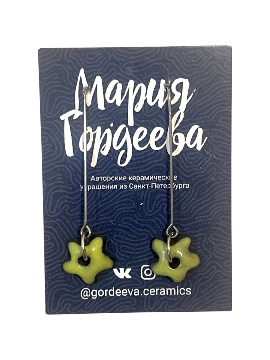 Серьги Мария Гордеева Цветочки, на длинной петле, керамика, салатовые