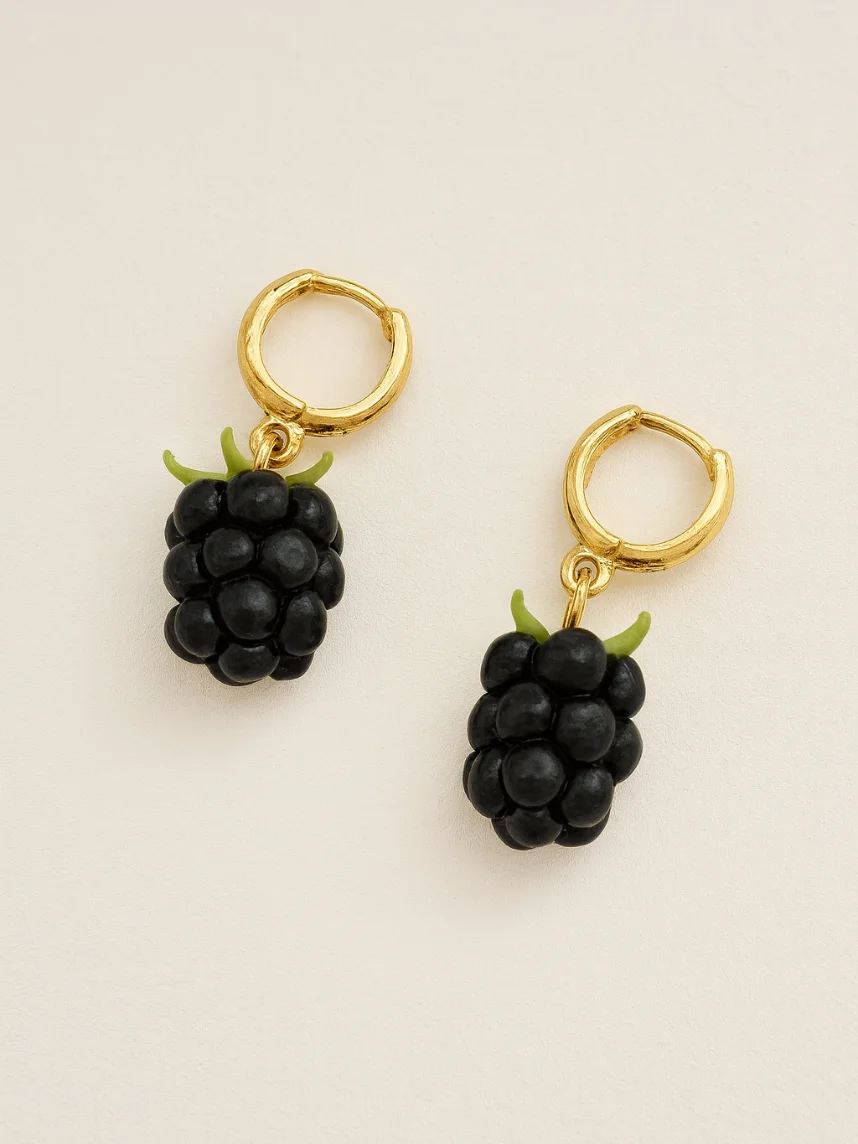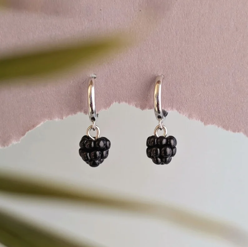 Серьги на кольцах «Ежевика» созданы из запекаемой полимерной глины вручную талантливым мастером Яной Насоновой.