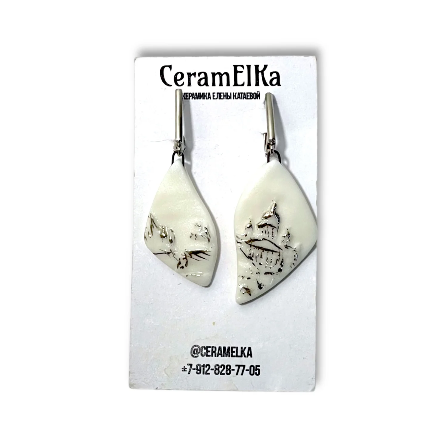 Необычные фарфоровые серьги с изображениями города. Ручная работа от кировской керамистки Елены Катаевой.
