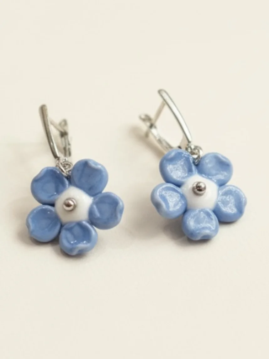 Серьги «Незабудки» — очаровательное украшение, выполнено вручную