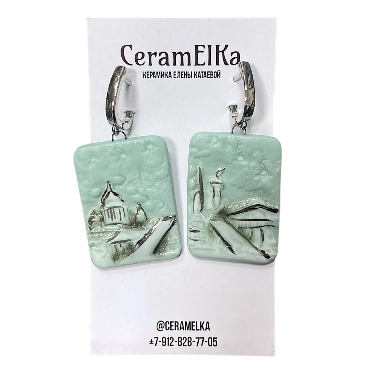 Серьги КерамЕлКа «Питер», фарфор, мятные