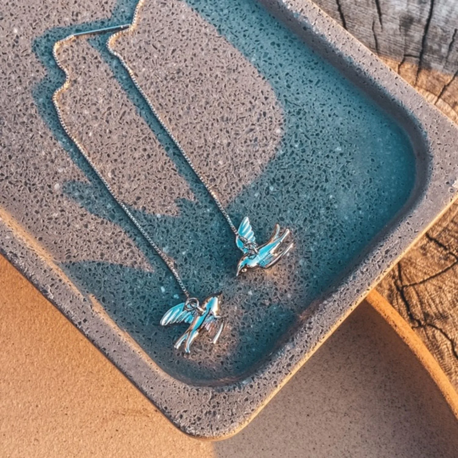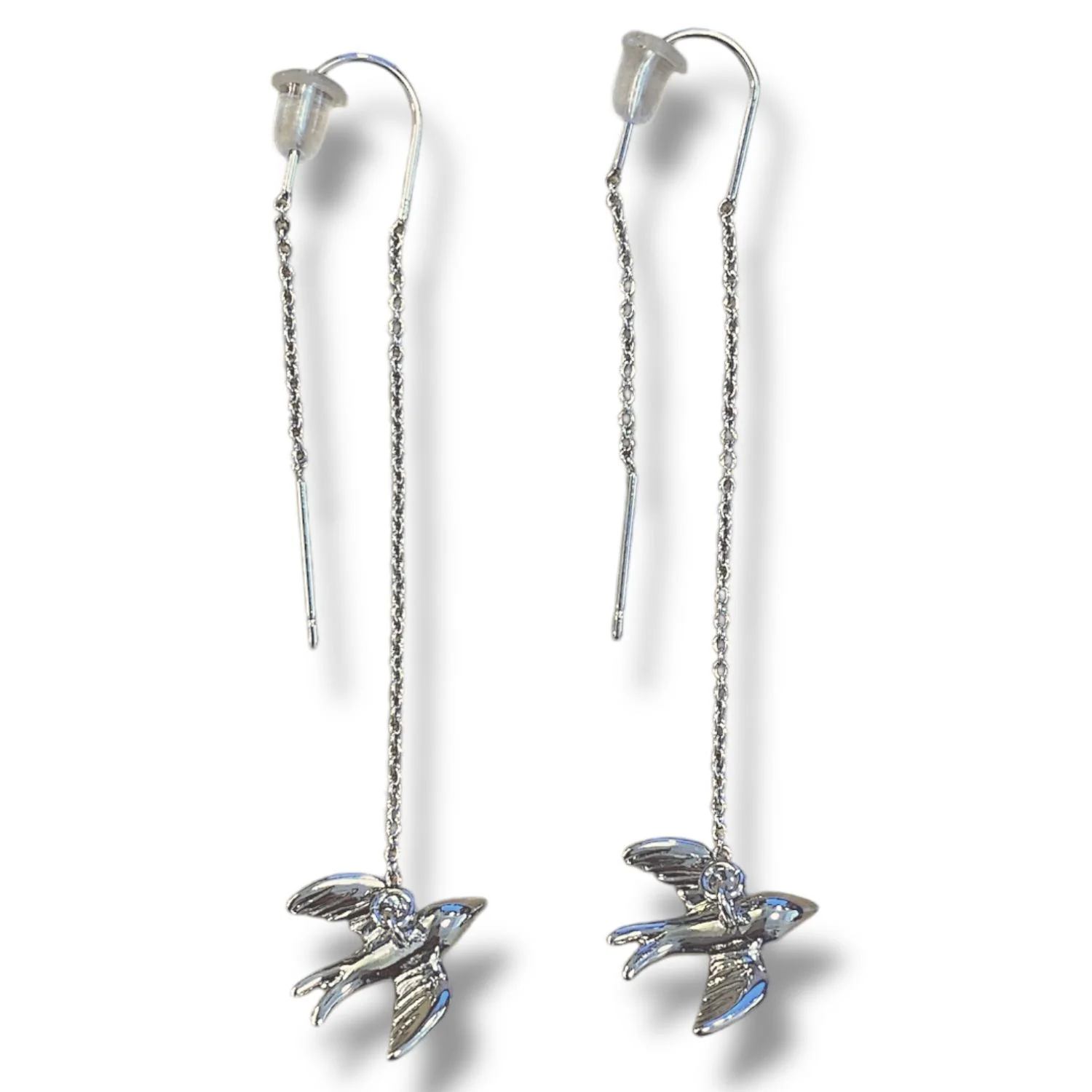 Серьги «Ласточки», выполненный из родированной латуни. Серьги с милыми птичками, легко и ненавязчиво смотрятся на ушке. Цепочка позволяет варьировать длину и положение птички.