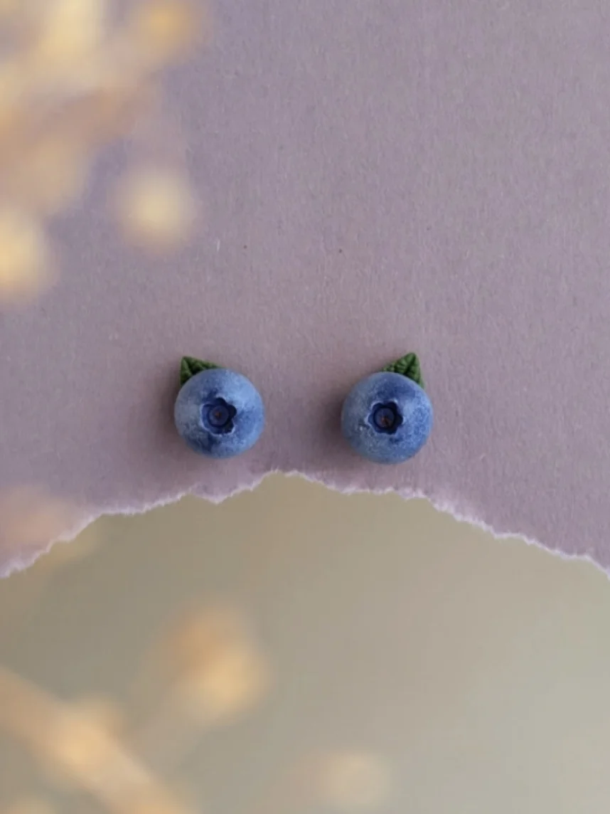 Серьги-пусеты «Голубика с листиком» созданы из запекаемой полимерной глины вручную талантливым мастером Яной Насоновой.