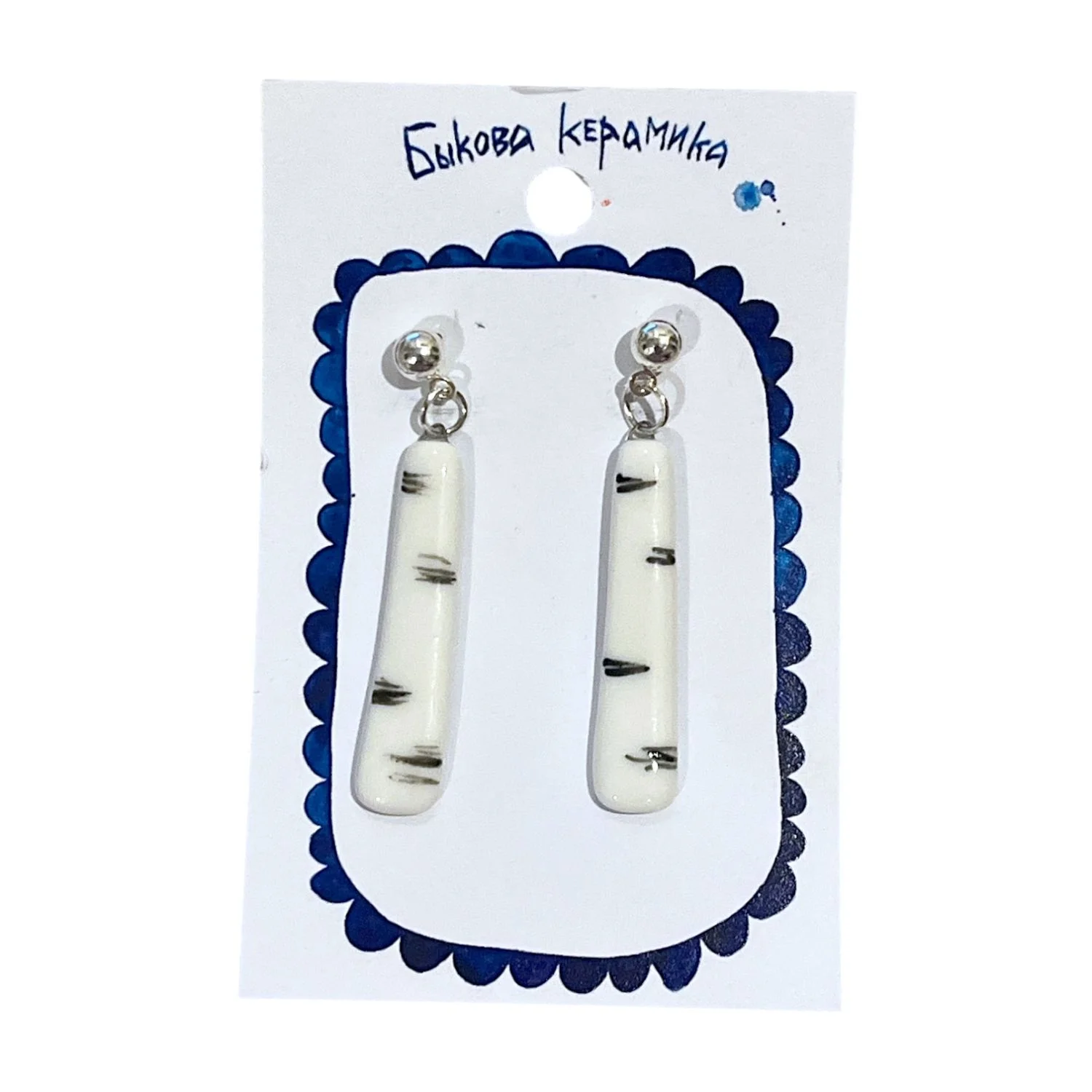 Серьги ручной работы Быкова керамика «‎Берёза»‎, фарфор