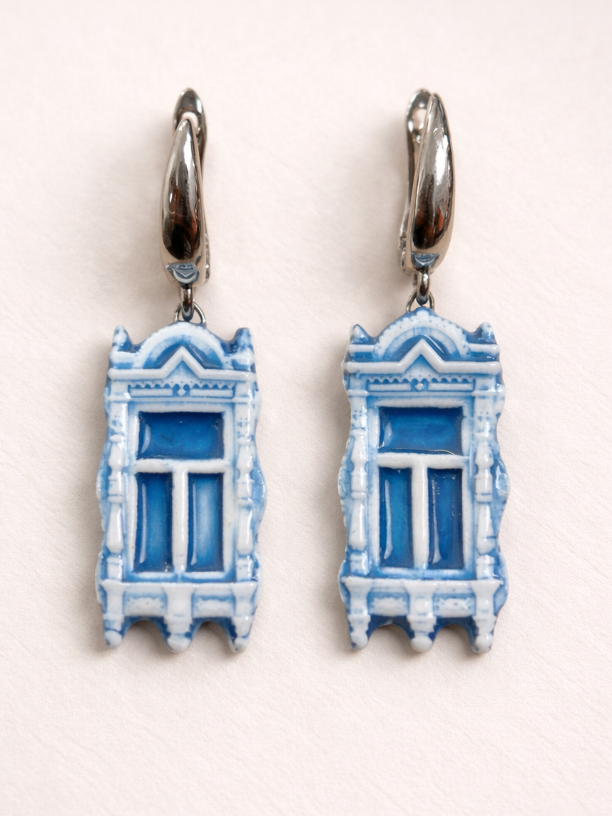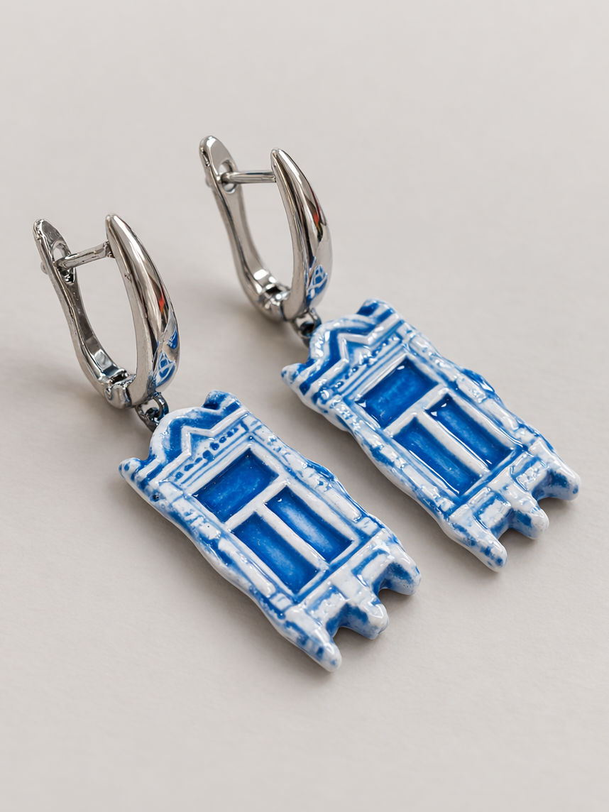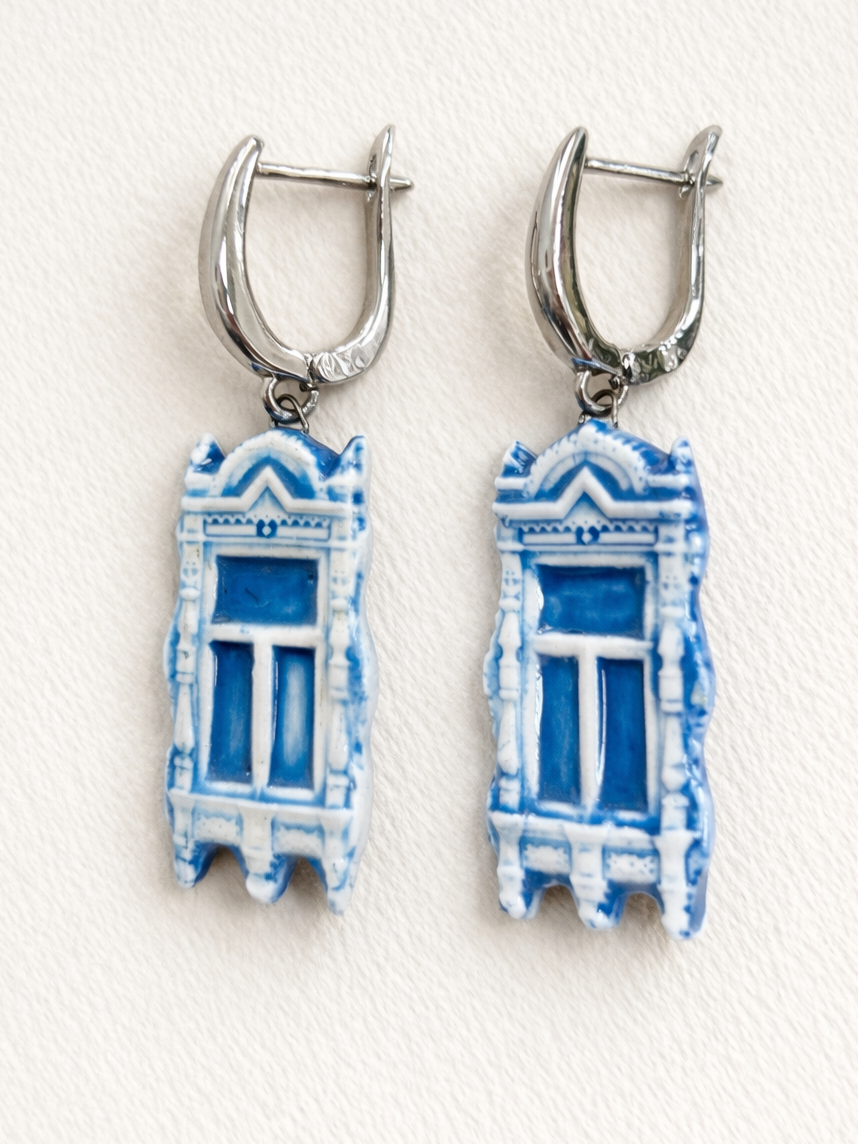 Серьги ручной работы Быкова керамика «Голубые ставни», фарфор