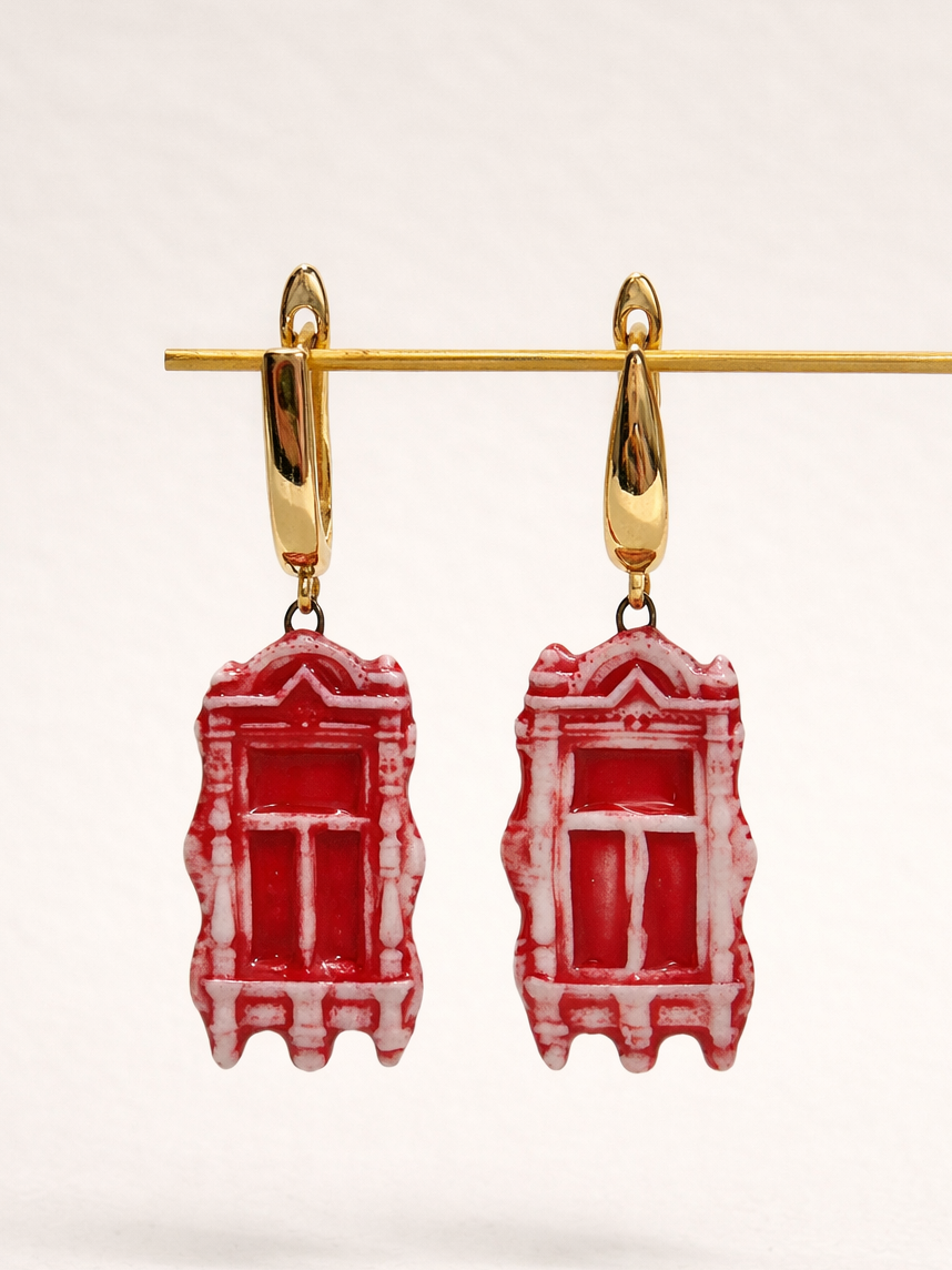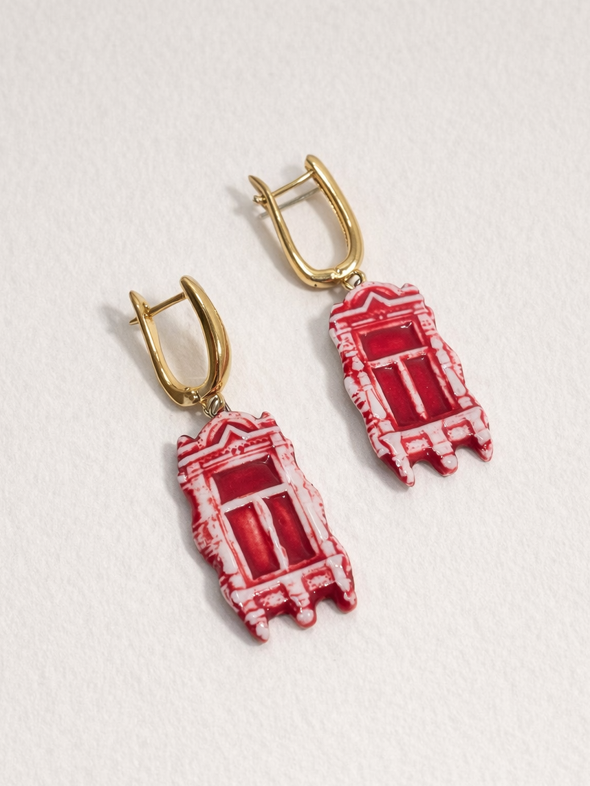 Серьги ручной работы Быкова керамика «Красные ставни», фарфор