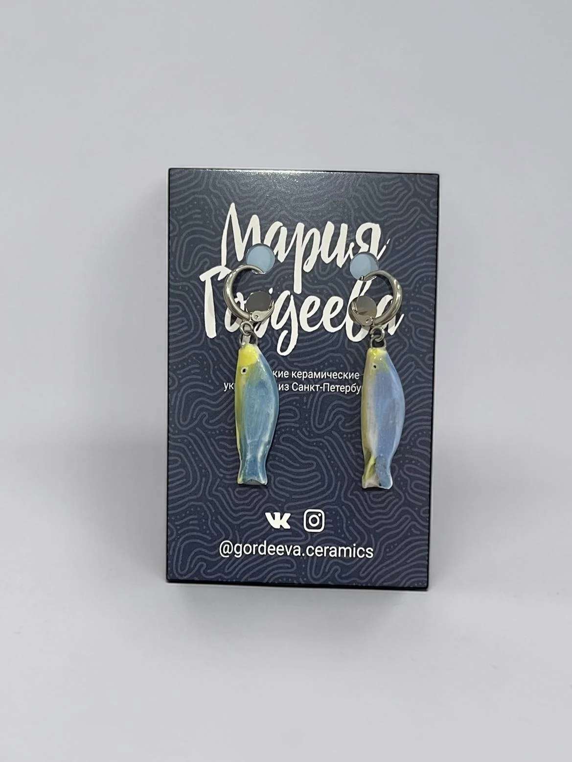 Серьги-конго Мария Гордеева «Рыбки», керамика, белые с синим