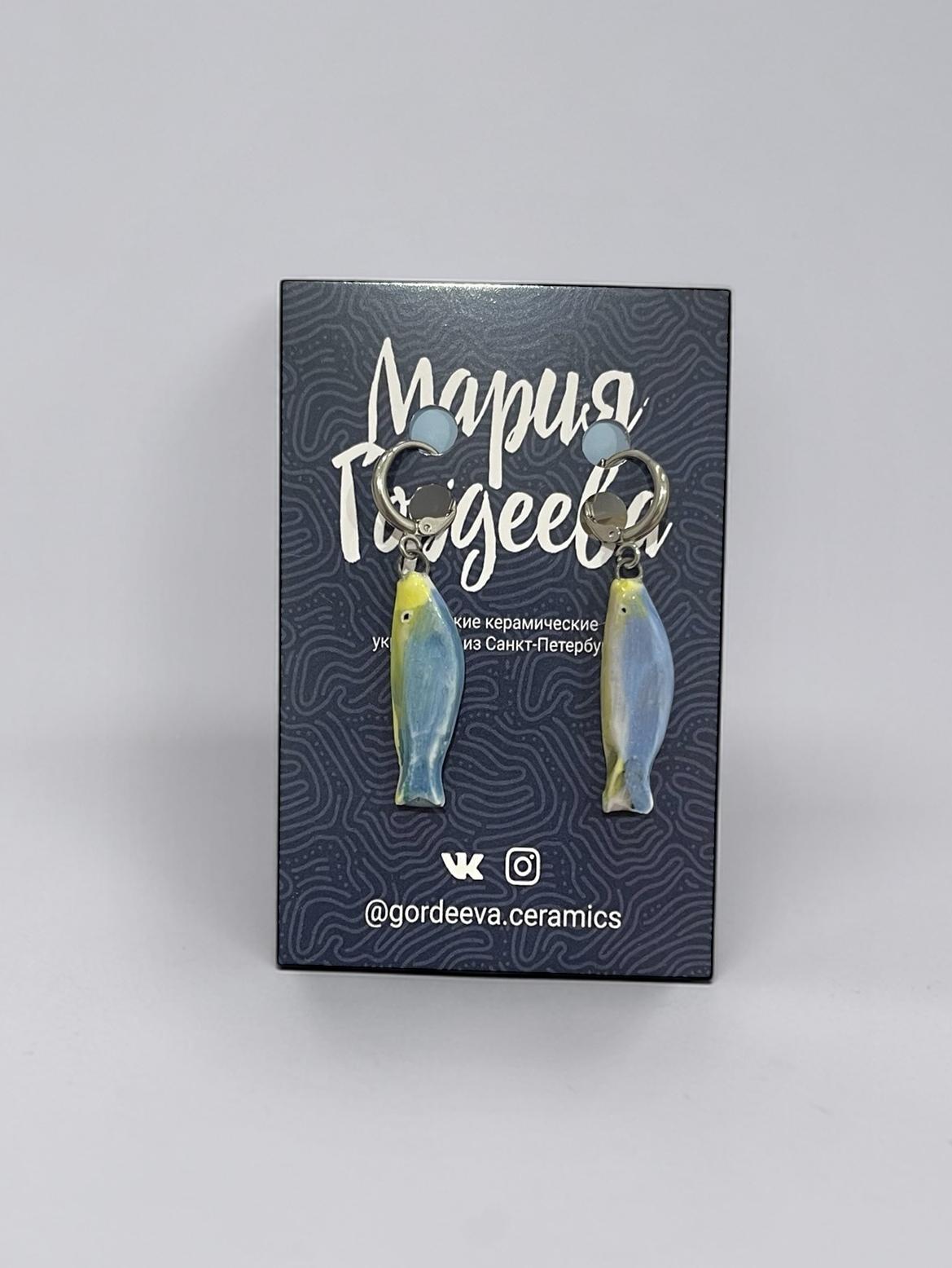 Керамические серьги «Рыбки» от петербургского бренда Gordeeva ceramics. Ручная работа. Эти серьги - настоящее произведение искусства, созданное Марией Гордеевой. Они отличаются своей уникальностью и оригинальностью дизайна. Каждая серьга выполнена вручную с использованием высококачественной керамики. Благодаря своей форме, декоративным элементам и яркому цвету, эти серьги привлекают внимание и добавляют индивидуальности любому образу. Они идеально подходят для молодых и стильных девушек, которые хотят выглядеть ярко и необычно. Сочетайте их с различными нарядами и аксессуарами, чтобы создать уникальный и запоминающийся образ. Размер - 25 мм. Замок - петля.