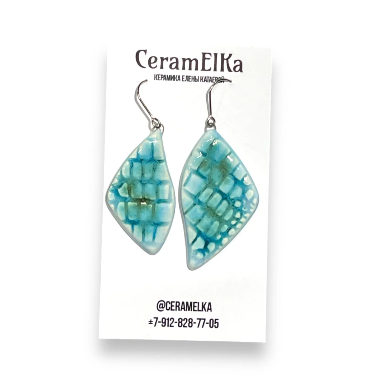 Серьги КерамЕлКа «Лепестки», керамика, сине-зелёные