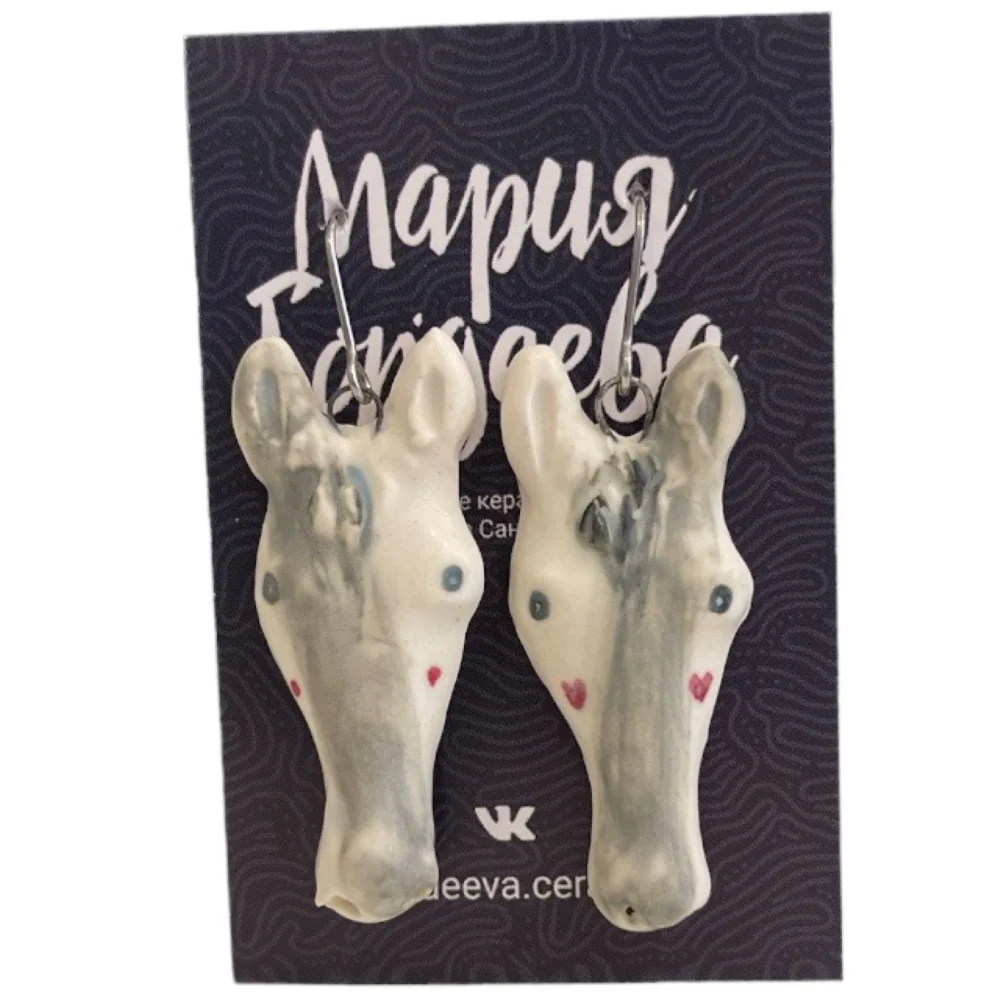 Серьги Мария Гордеева «Лошадки», керамика, серые