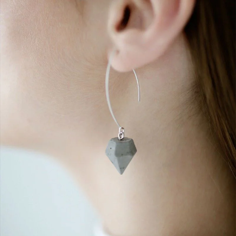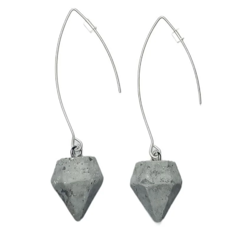 Серьги на петле «Алмаз», бетон, ювелирная сталь, серые