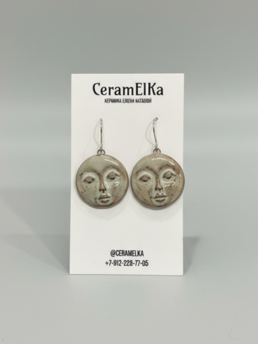 Необычные керамические серьги с изображениями лиц на петле. Ручная работа от кировской керамистки Елены Катаевой.