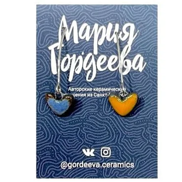 Серьги Мария Гордеева Сердечки, на петле, керамика, сине-оранжевые