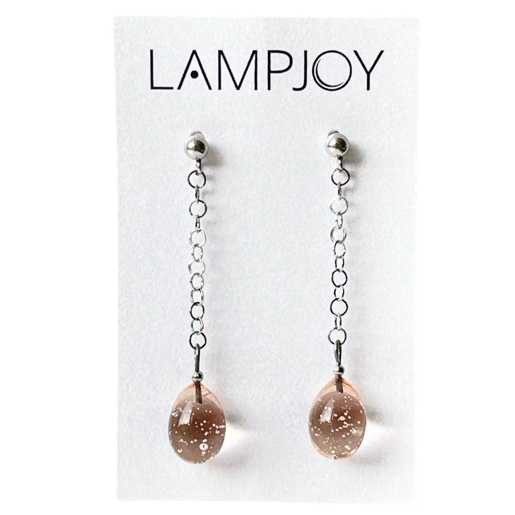Стеклянные серьги «Капли» в персиковом цвете.