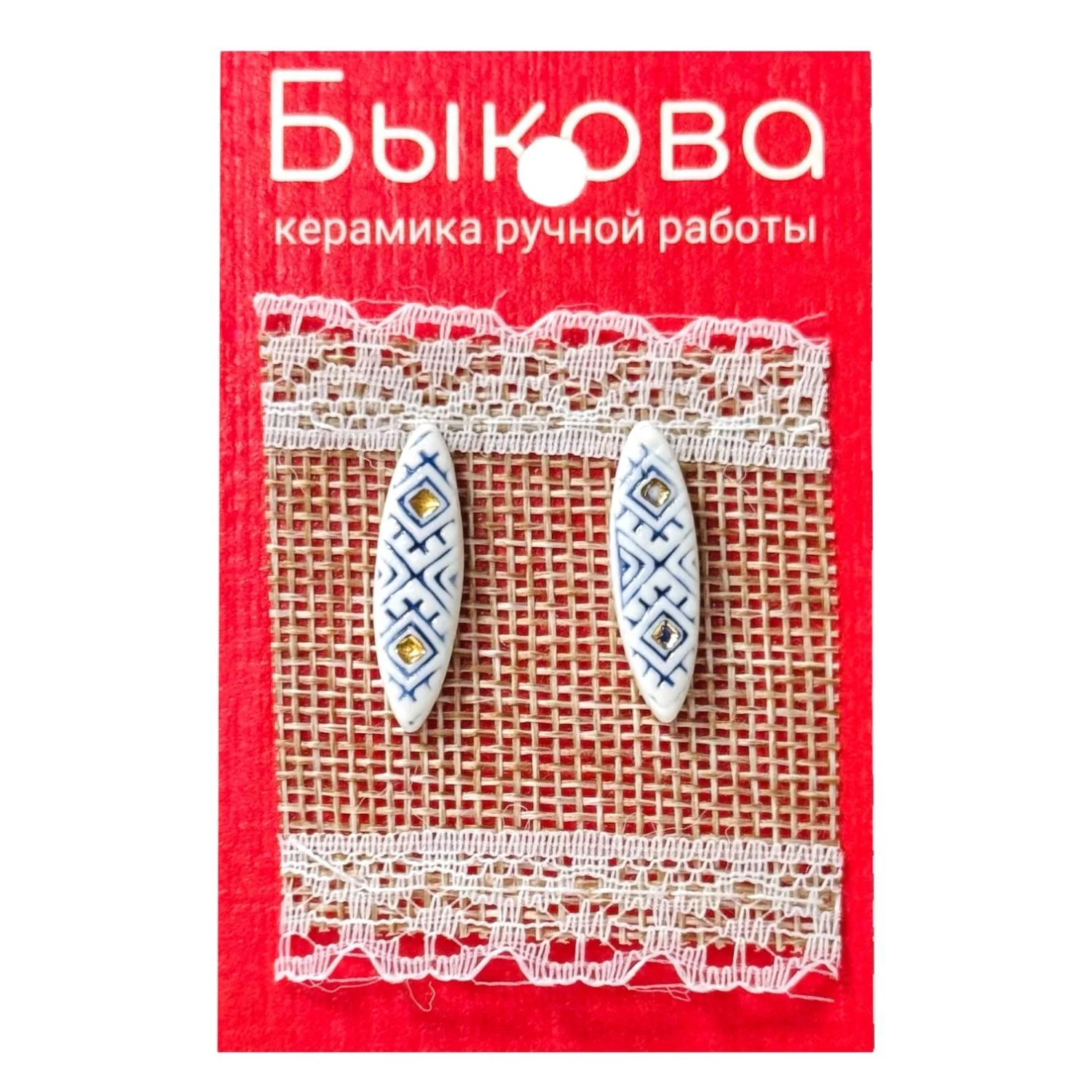 Серьги ручной работы Быкова керамика «Орнамент»‎, фарфор
