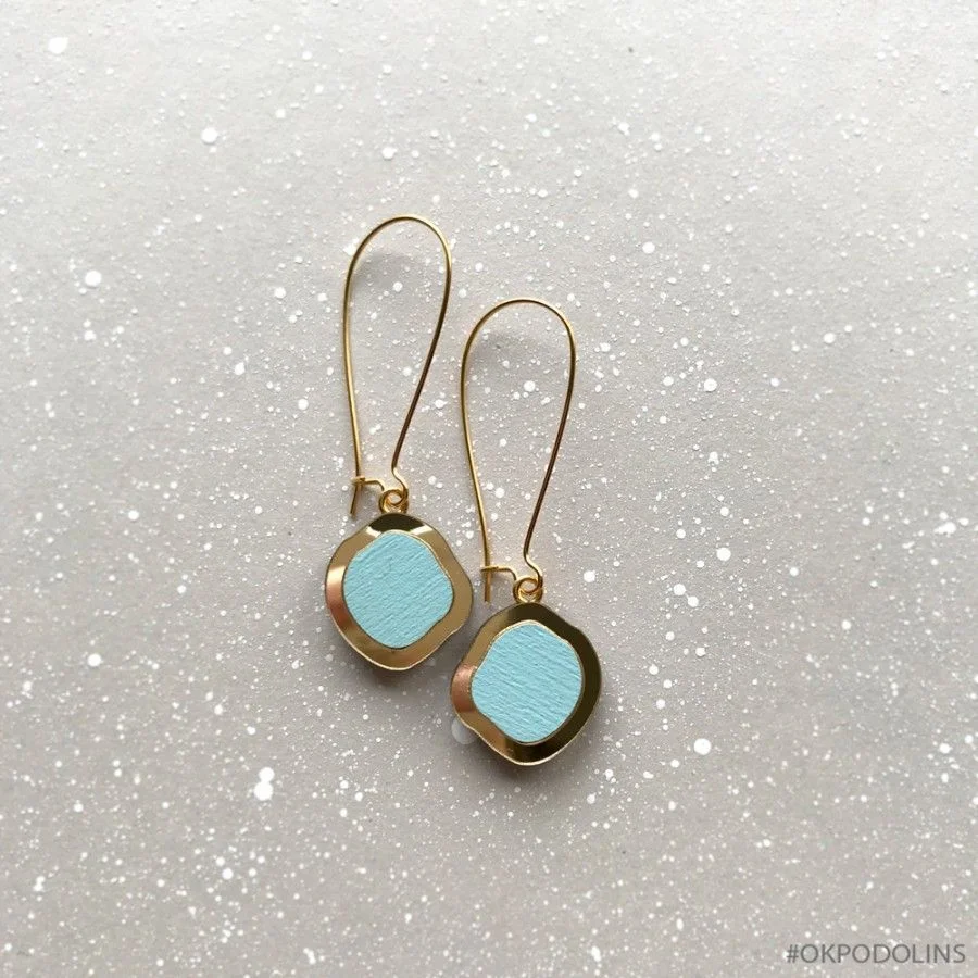Серьги «Озёра» - это изящные украшения, которые привлекут внимание своей неповторимой красотой. Их дизайн вдохновлен двумя озерами и выполнен в голубых тонах с золотыми вставками. Серьги изготовлены из дерева и украшены оргстеклом, что придает им особую привлекательность. Размер сережек составляет 65х20 мм, что делает их идеальными для повседневного ношения. Фурнитура изготовлена из хирургического сплава, обеспечивая надежность и комфорт при ношении. Бренд OKPODOLINS. Замок - швенза.