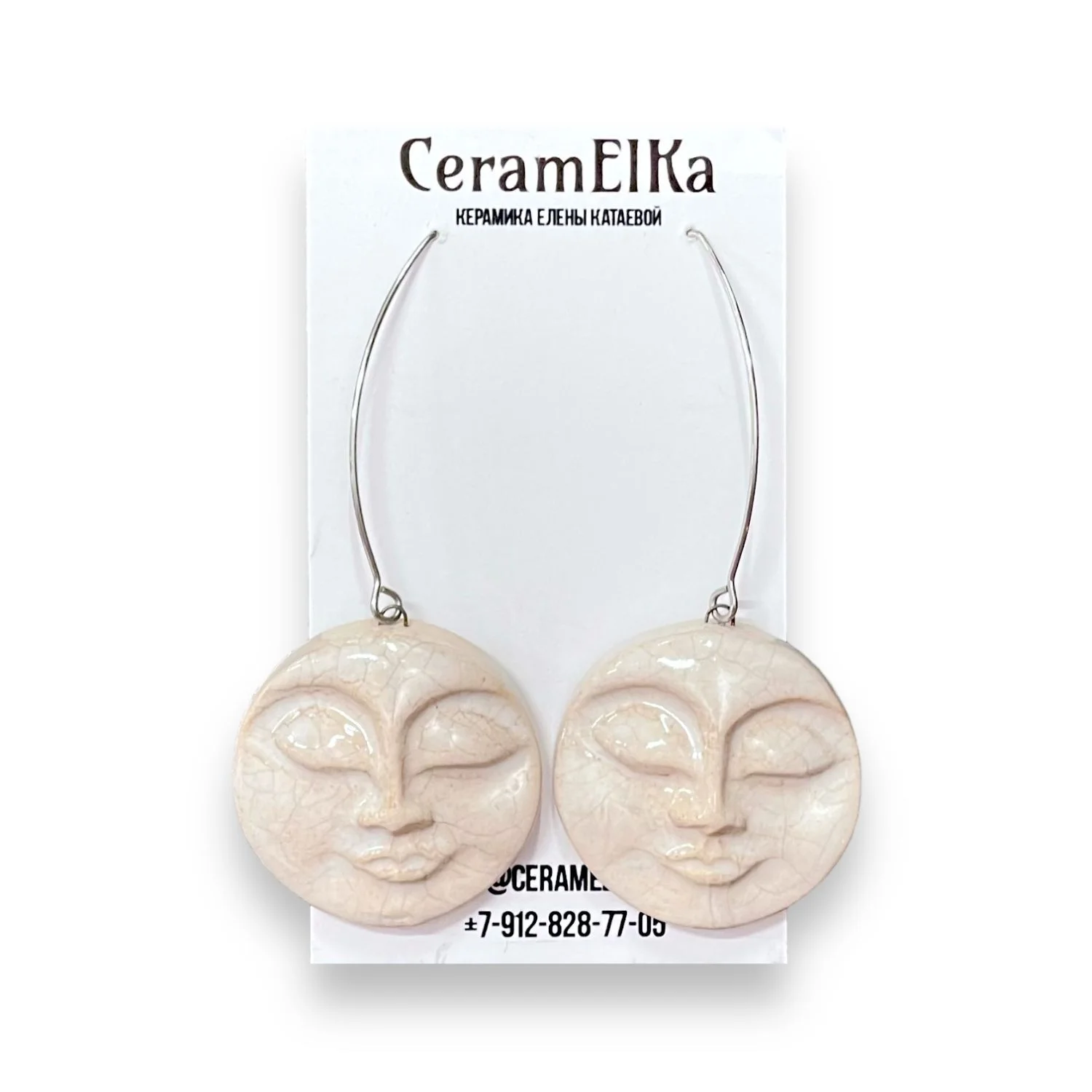 Необычные керамические серьги с изображениями лиц в бледно-розовом цвете с эффектом кракелюр. Ручная работа от кировской керамистки Елены Катаевой.
