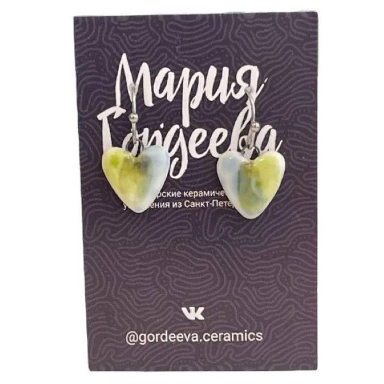 Керамические серьги в виде сердечек цвета от петербургского бренда Gordeeva ceramics.