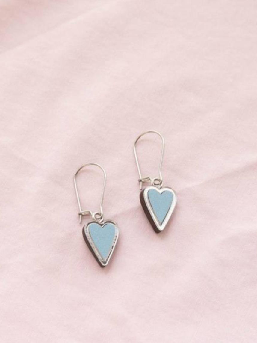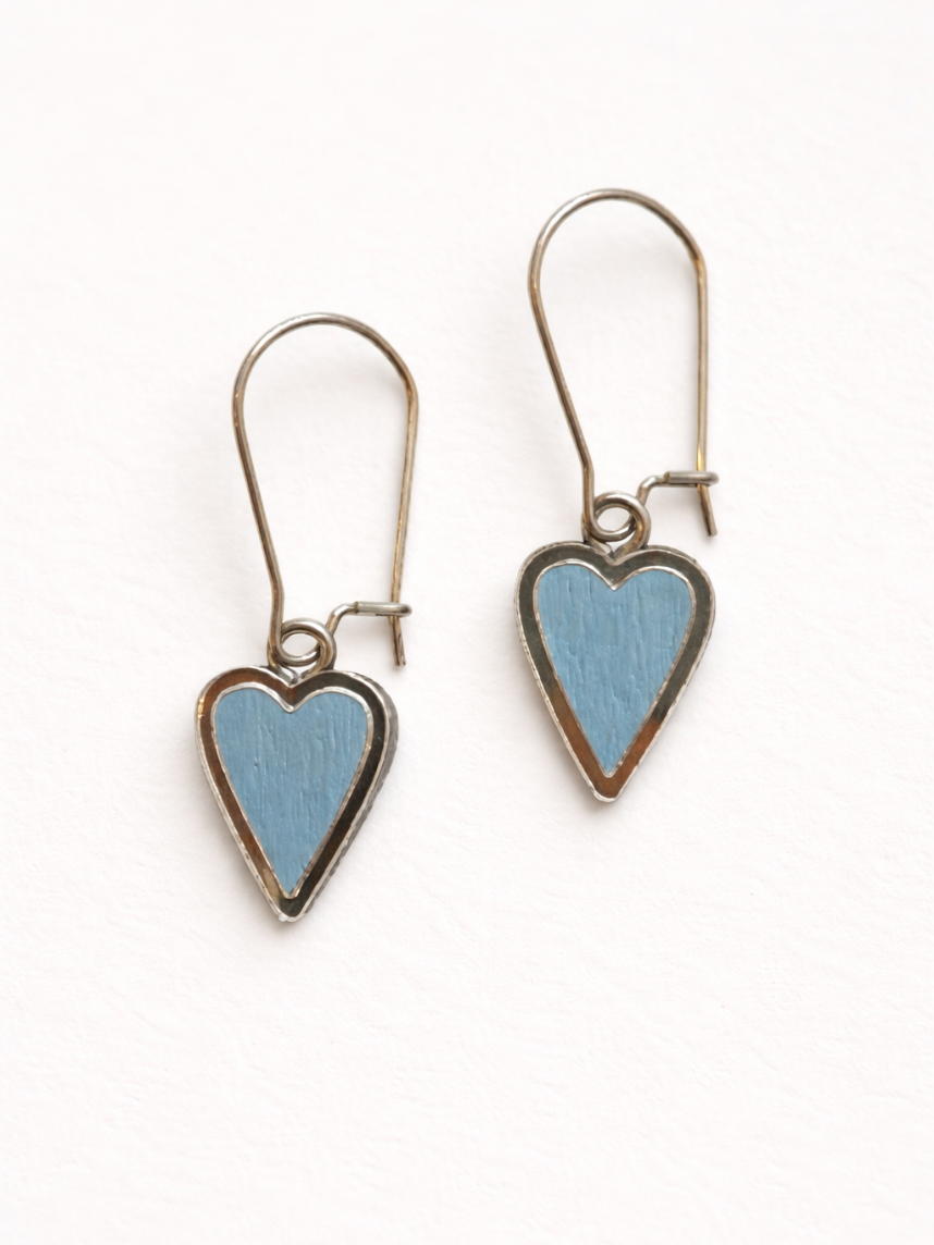 Серьги Сердечки из серии «Преданное сердце», дерево, голубые