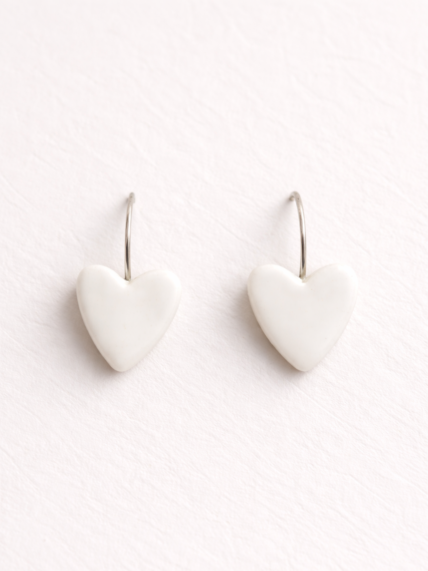 Серьги Elizabeth Madar Сердечки, керамика, молочные
