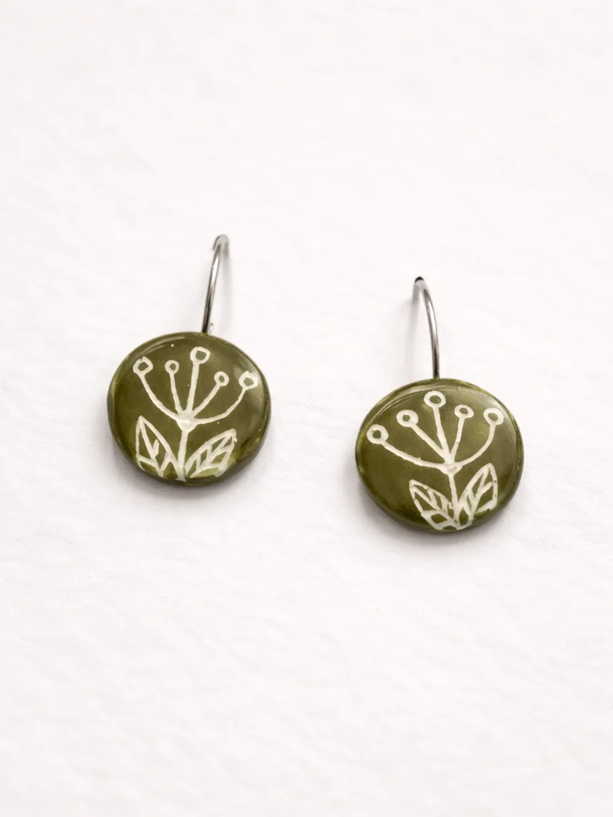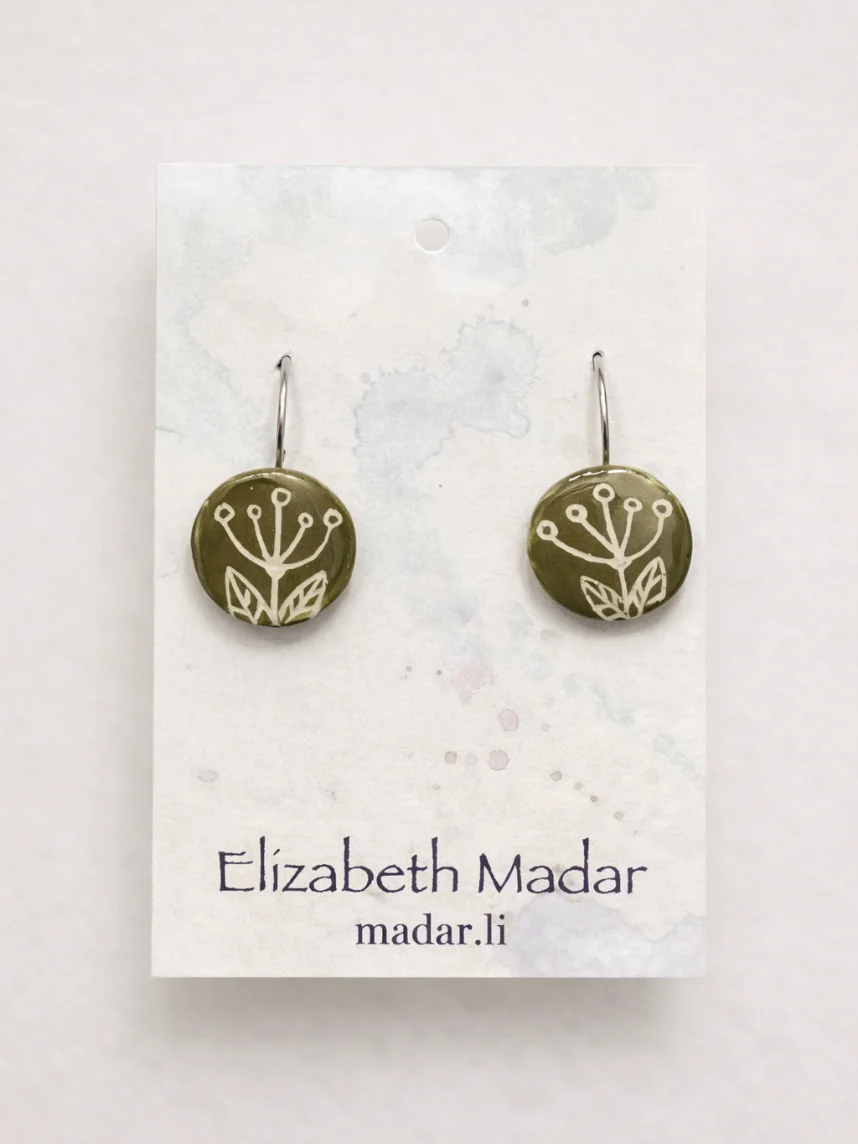 Серьги Elizabeth Madar с цветочным орнаментом, круглые, керамика, хаки