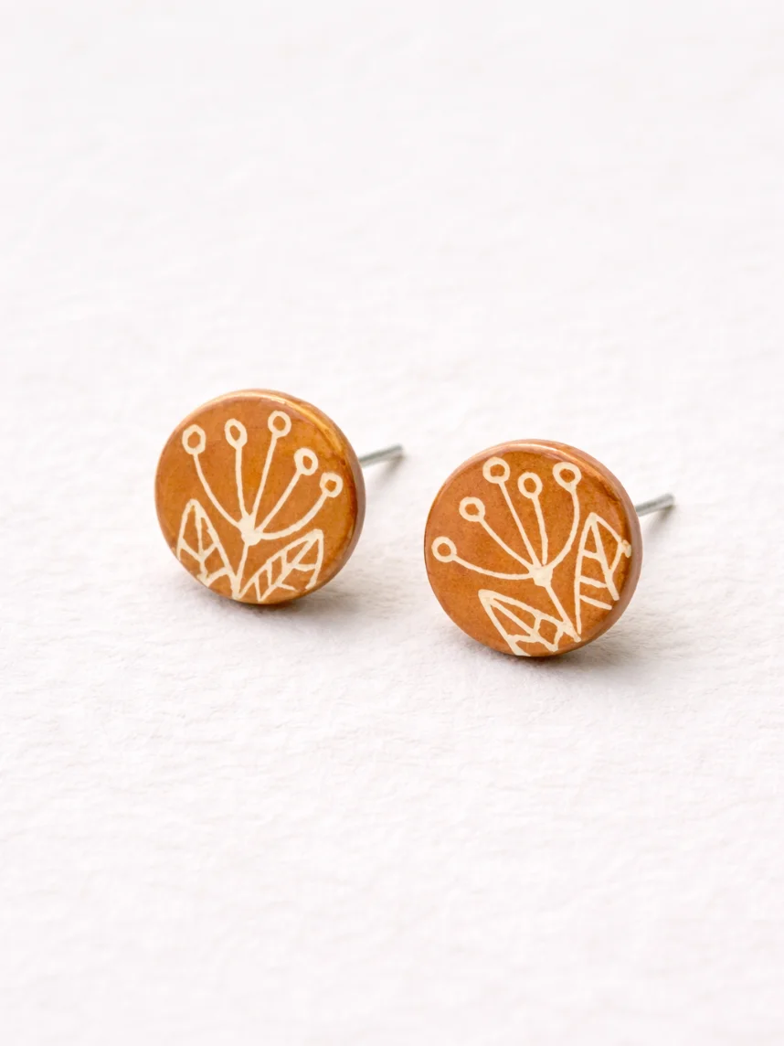 Серьги Elizabeth Madar с цветочным орнаментом, круглые, керамика, оранжевые