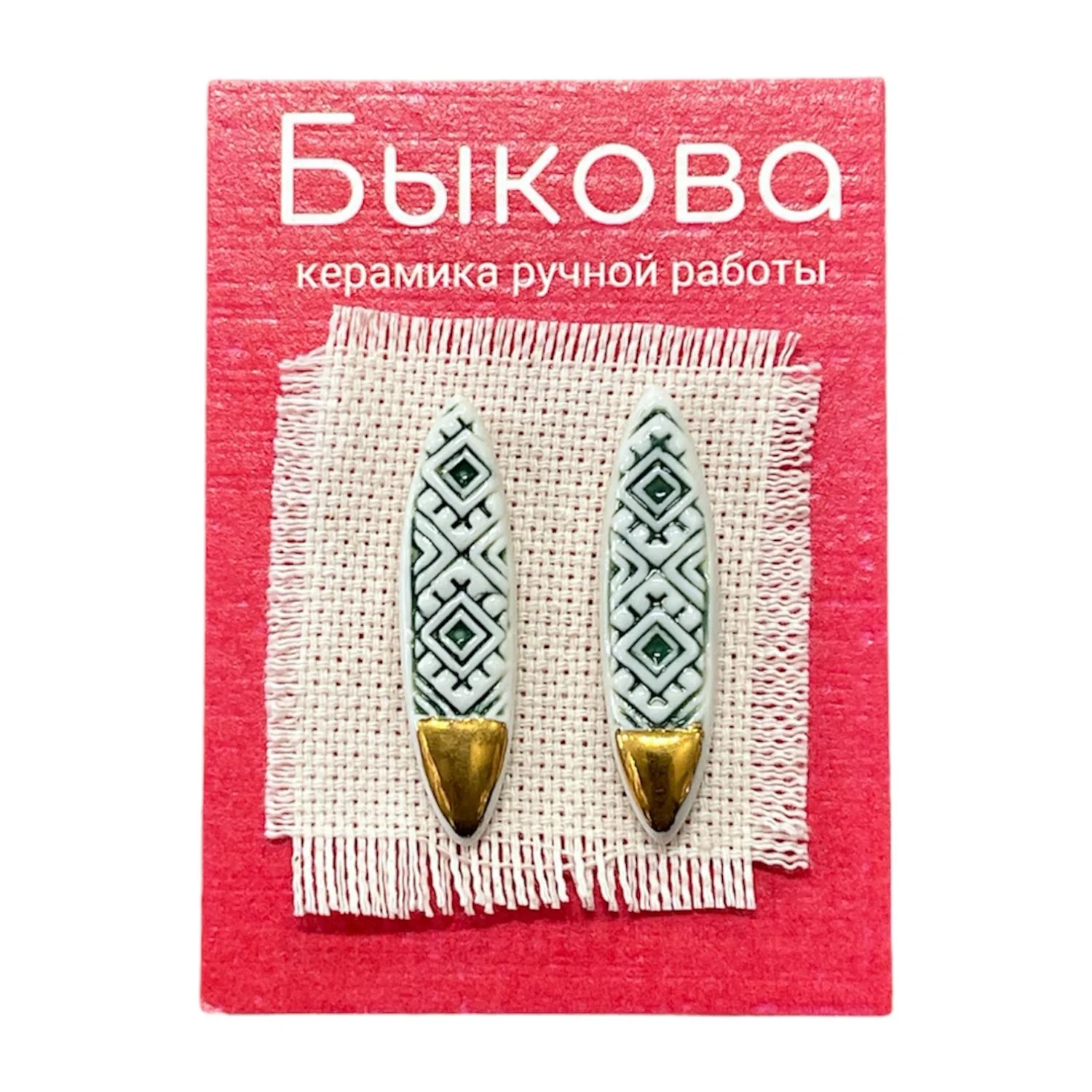 Серьги ручной работы Быкова керамика «‎Зеленый орнамент»‎, фарфор
