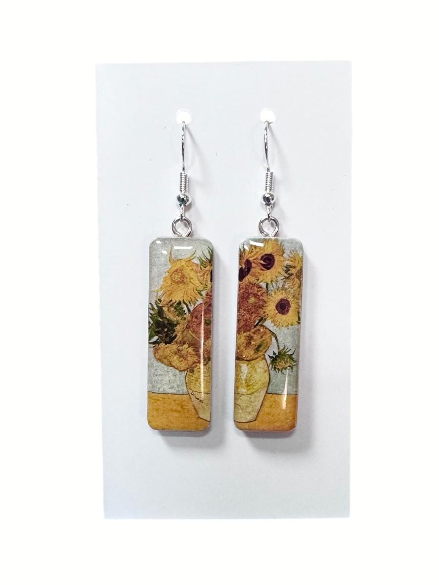 Серьги с картиной «Подсолнухи», дерево с эпоксидной смолой