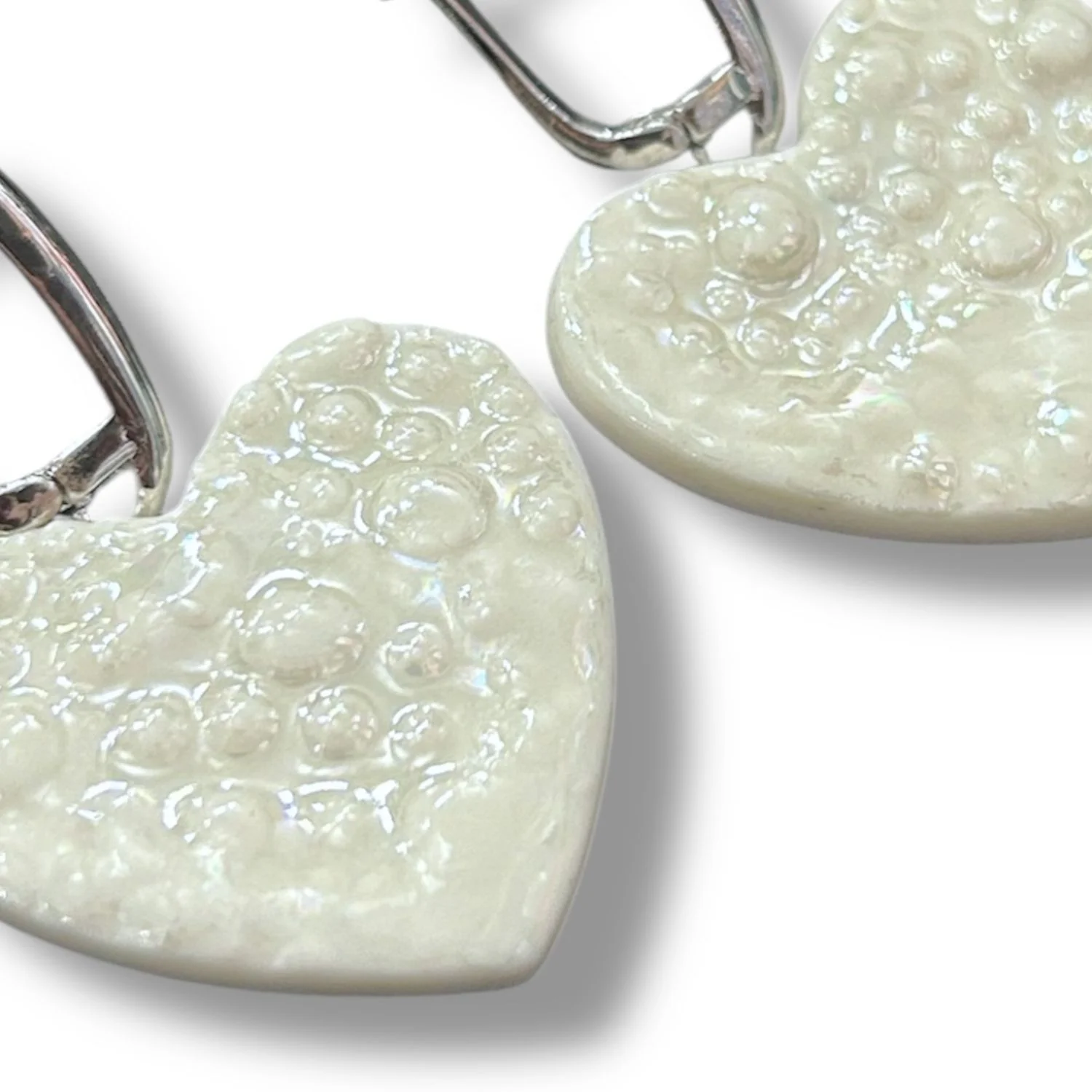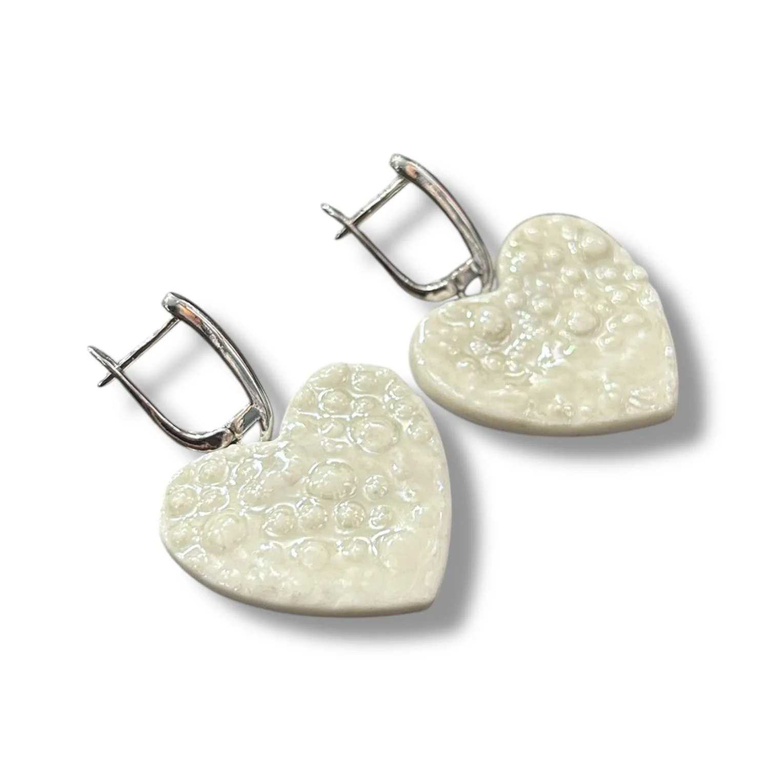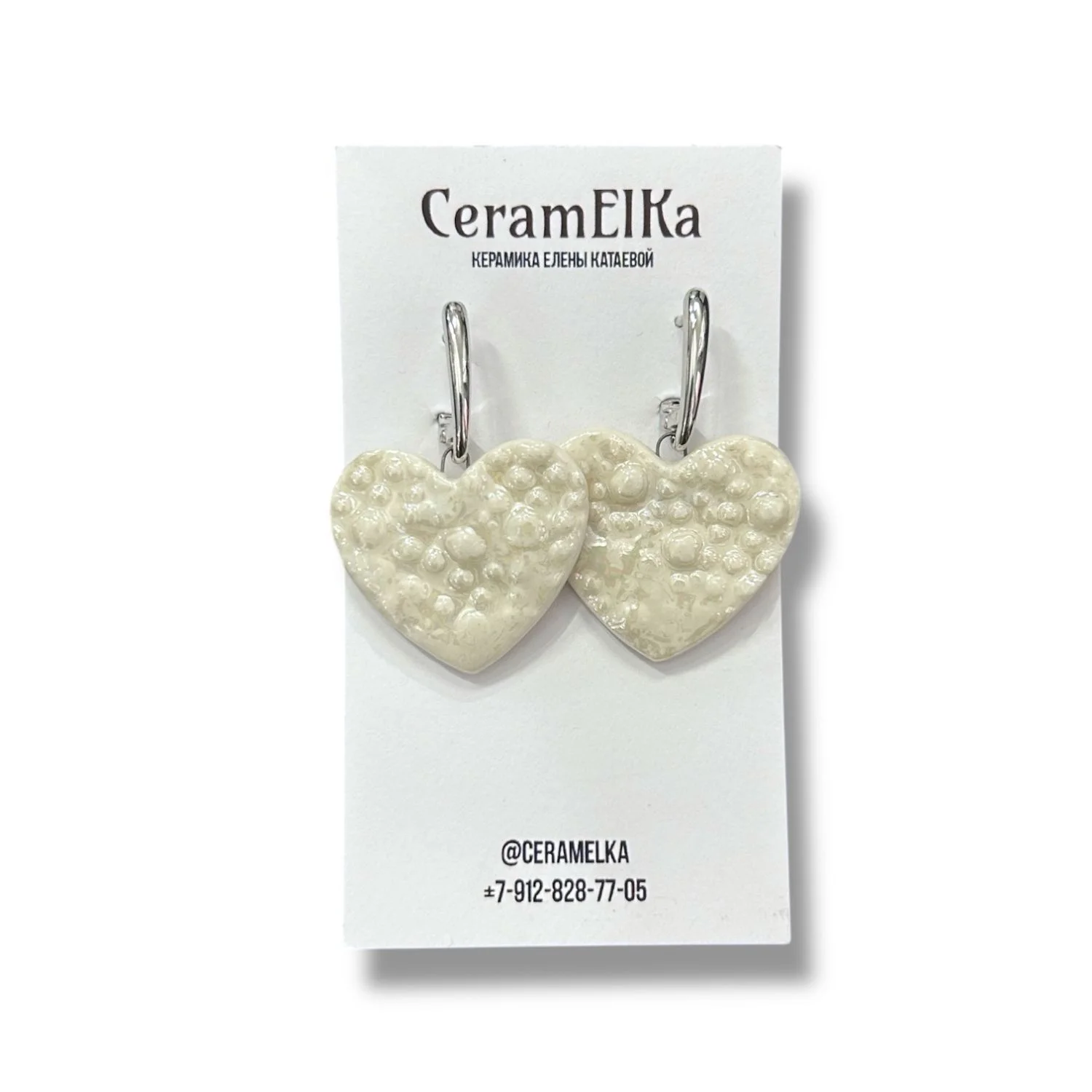 Серьги КерамЕлКа «Сердечки», фарфор, белые