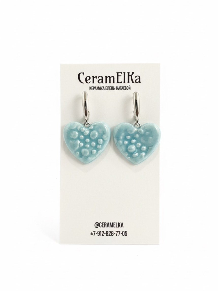 Серьги текстурные КерамЕлКа «Сердца», керамика, голубые