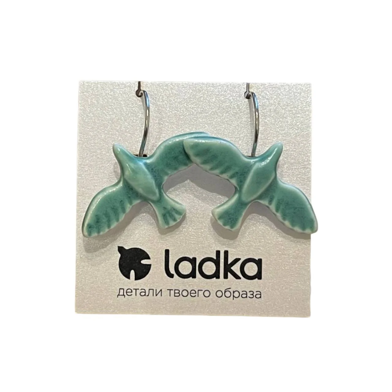 Украшения бренда "ladka" выполнены из природной фаянсовой глины и зелёной прозрачной глазури.