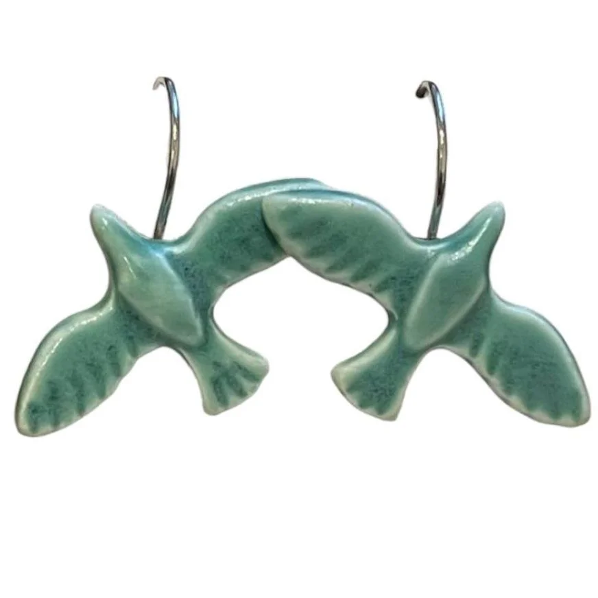 Серьги «Зелёные пташки», фаянсовая глина