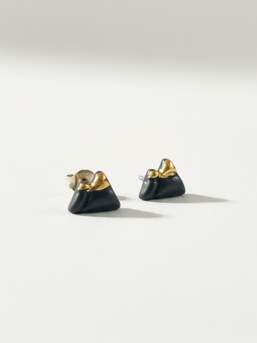 Серёжки-гвоздики КерамЕлКа «Горы», фарфор, чёрно-золотистые