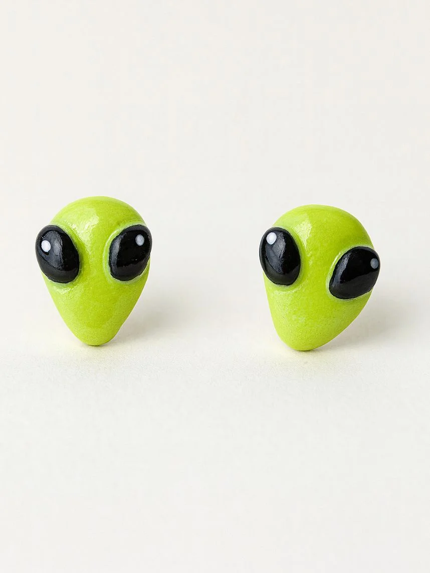 Серёжки-гвоздики Радость Рядом «Инопланетянин», полимерная глина, зеленые