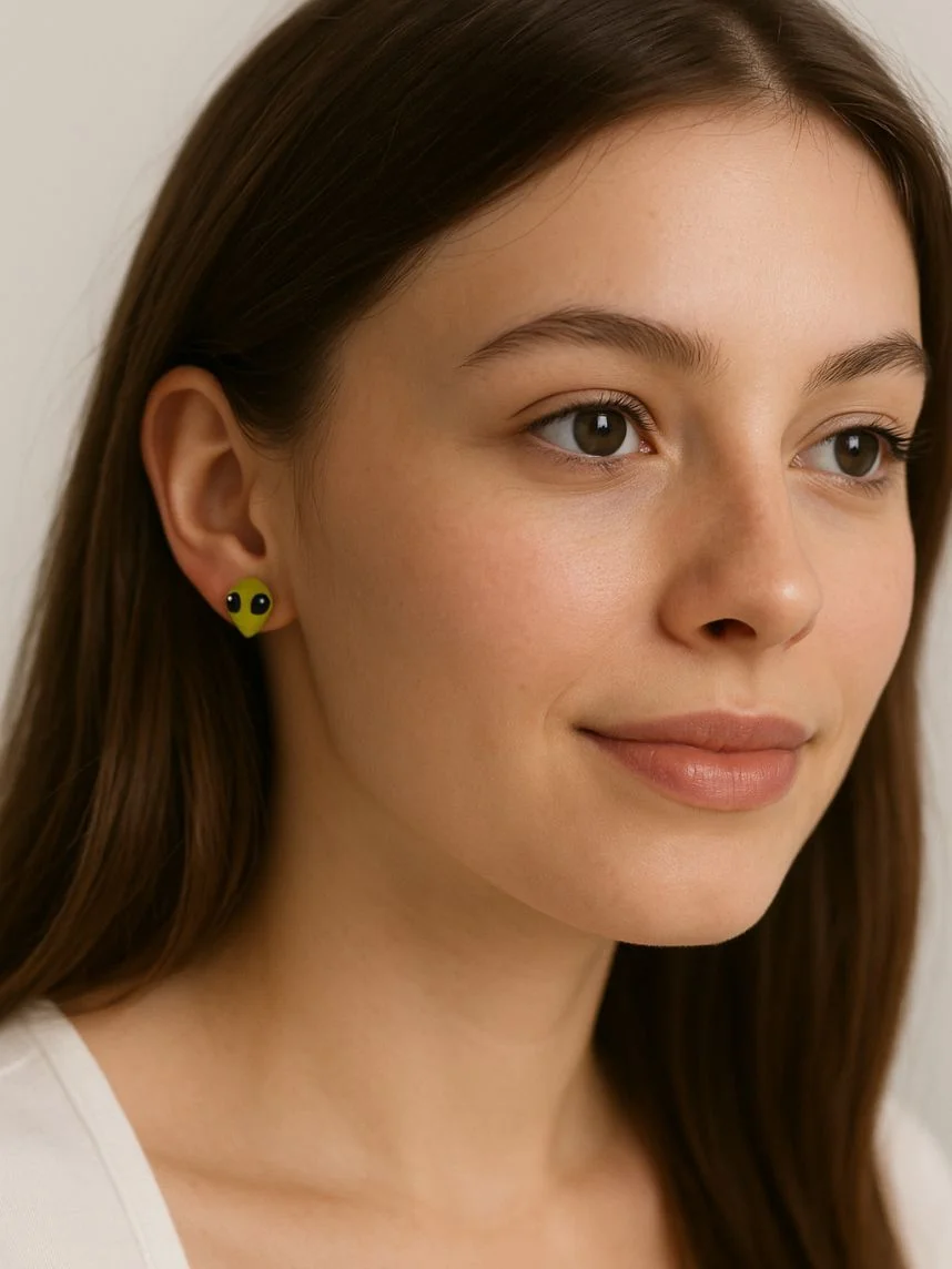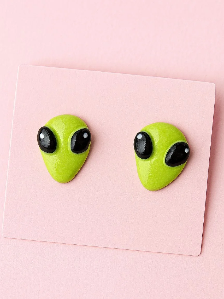 Милые серёжки-гвоздики «Инопланетянин». Отличный подарок для себя или подруги.