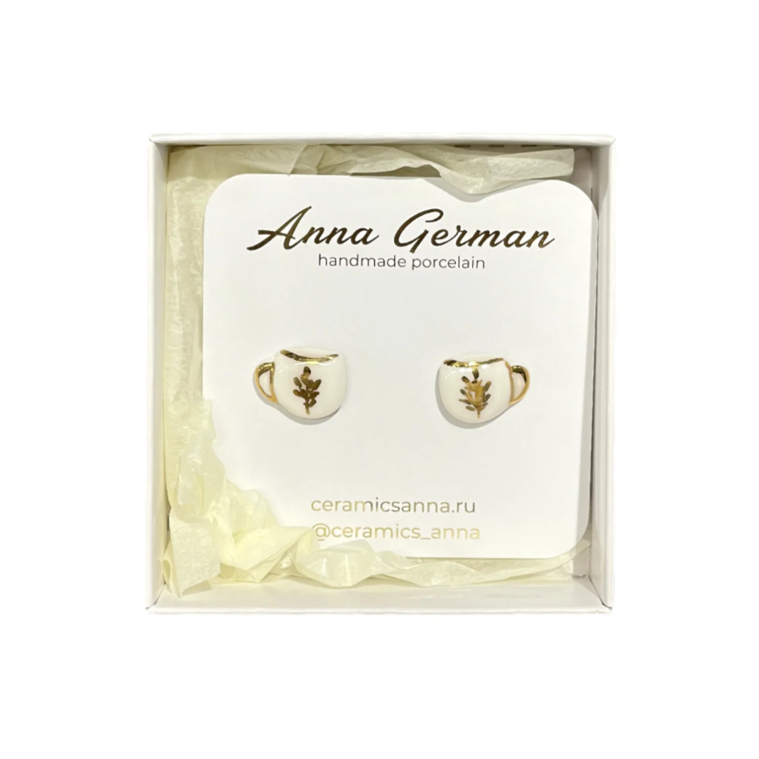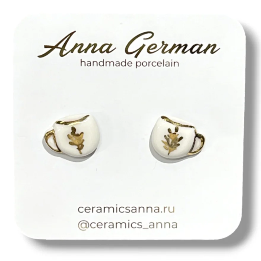 Элегантные фарфоровые серьги-гвоздики в виде кружек с позолотой. Ручная работа от петербургской керамистки Анны Герман.