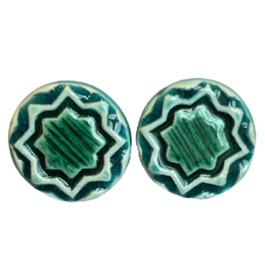 Серёжки-гвоздики КерамЕлКа круглые с узором, керамика, зелёные