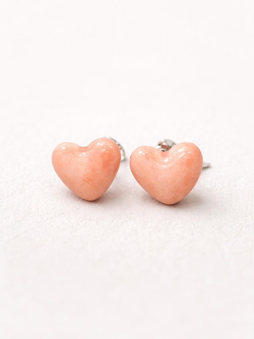 Серёжки-гвоздики «Сердечки пухлые», керамика, оранжевые