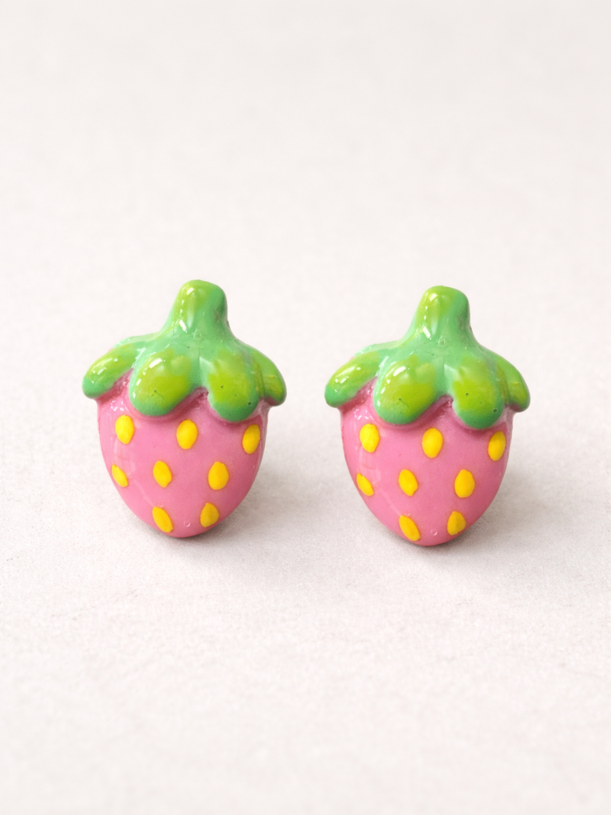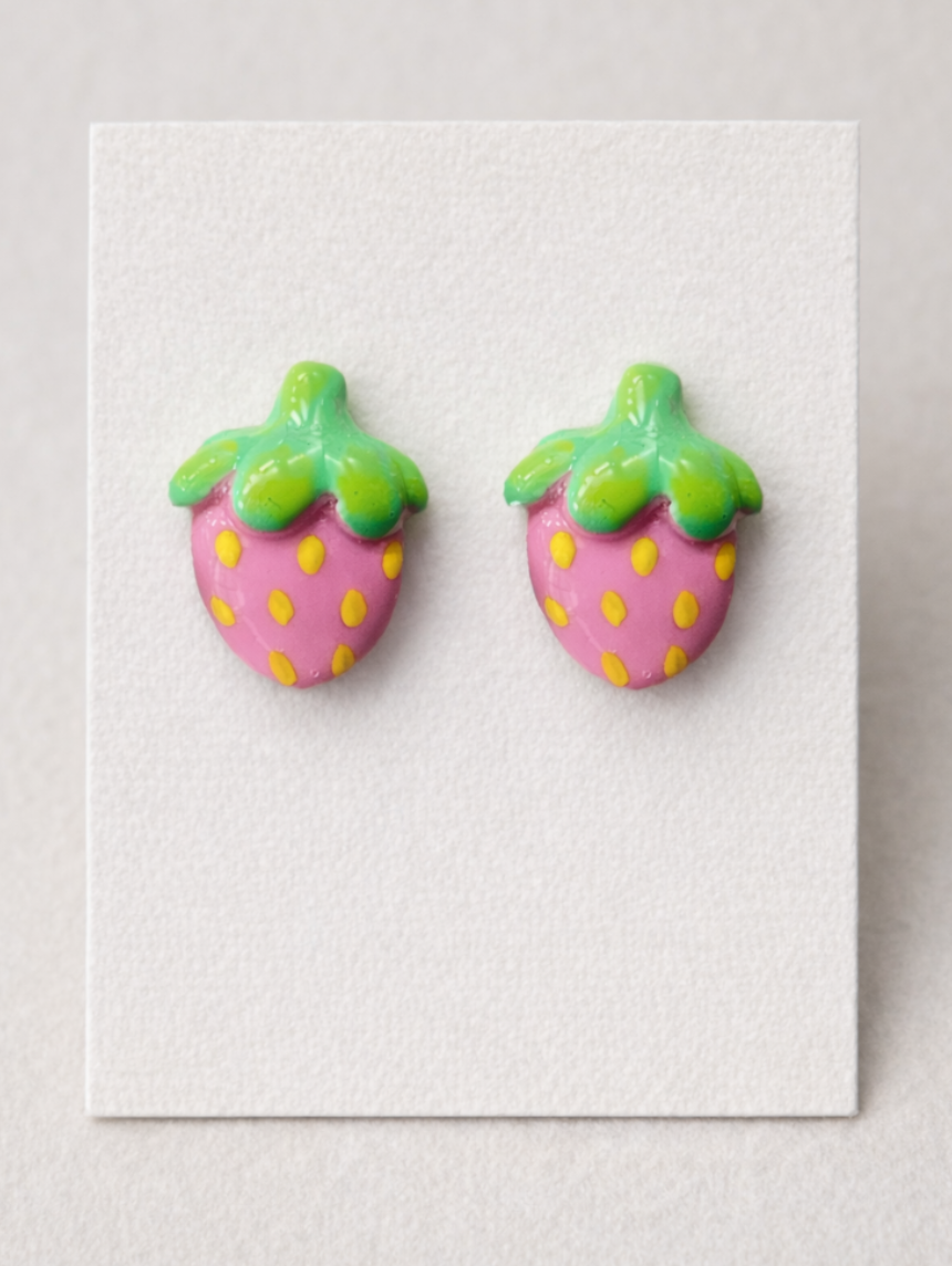 Серёжки-гвоздики Радость Рядом «Клубнички», полимерная глина, розовые