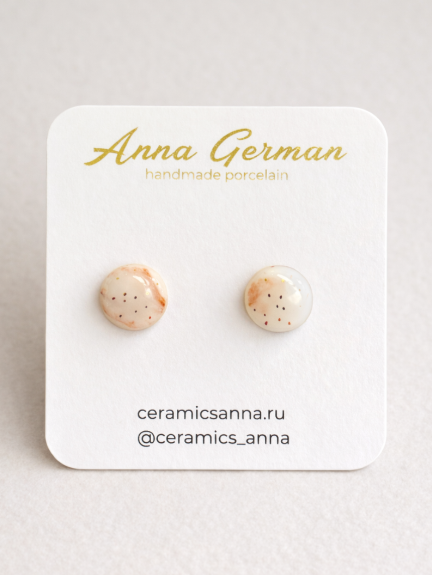 Серёжки-гвоздики «Круги», фарфор, розовые в точку