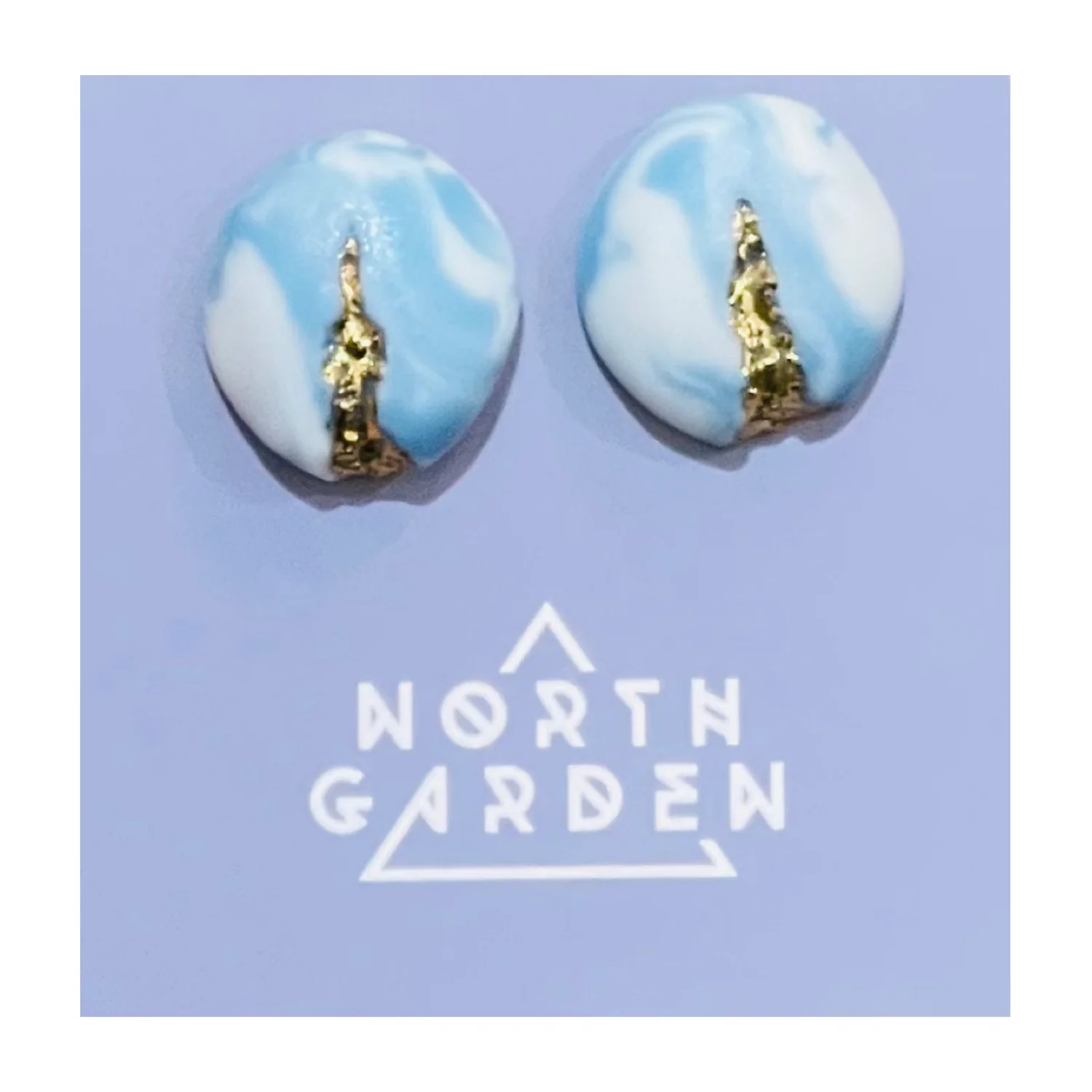 Элегантные фарфоровые серёжки-гвоздики из фарфора с позолотой. Ручная работа от бренда North Garden.