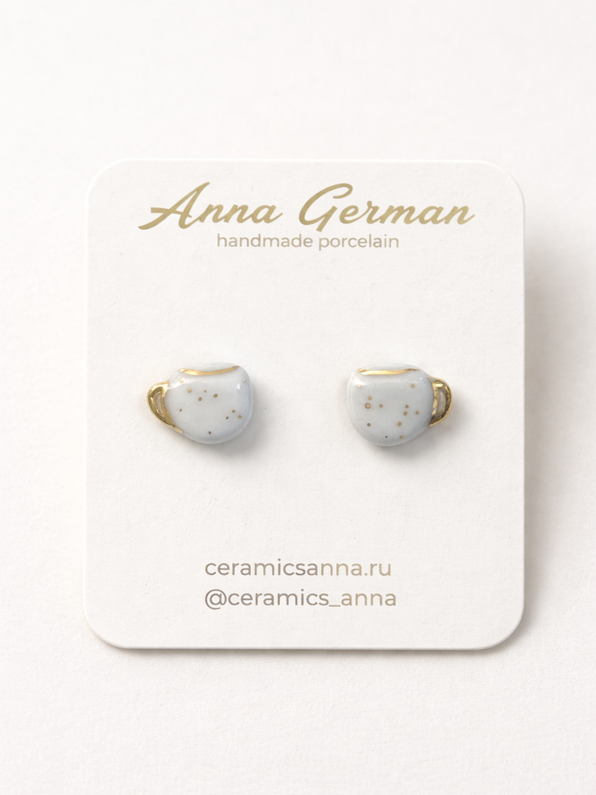 Элегантные и привлекающие внимание фарфоровые серьги голубого цвета в форме кружек.