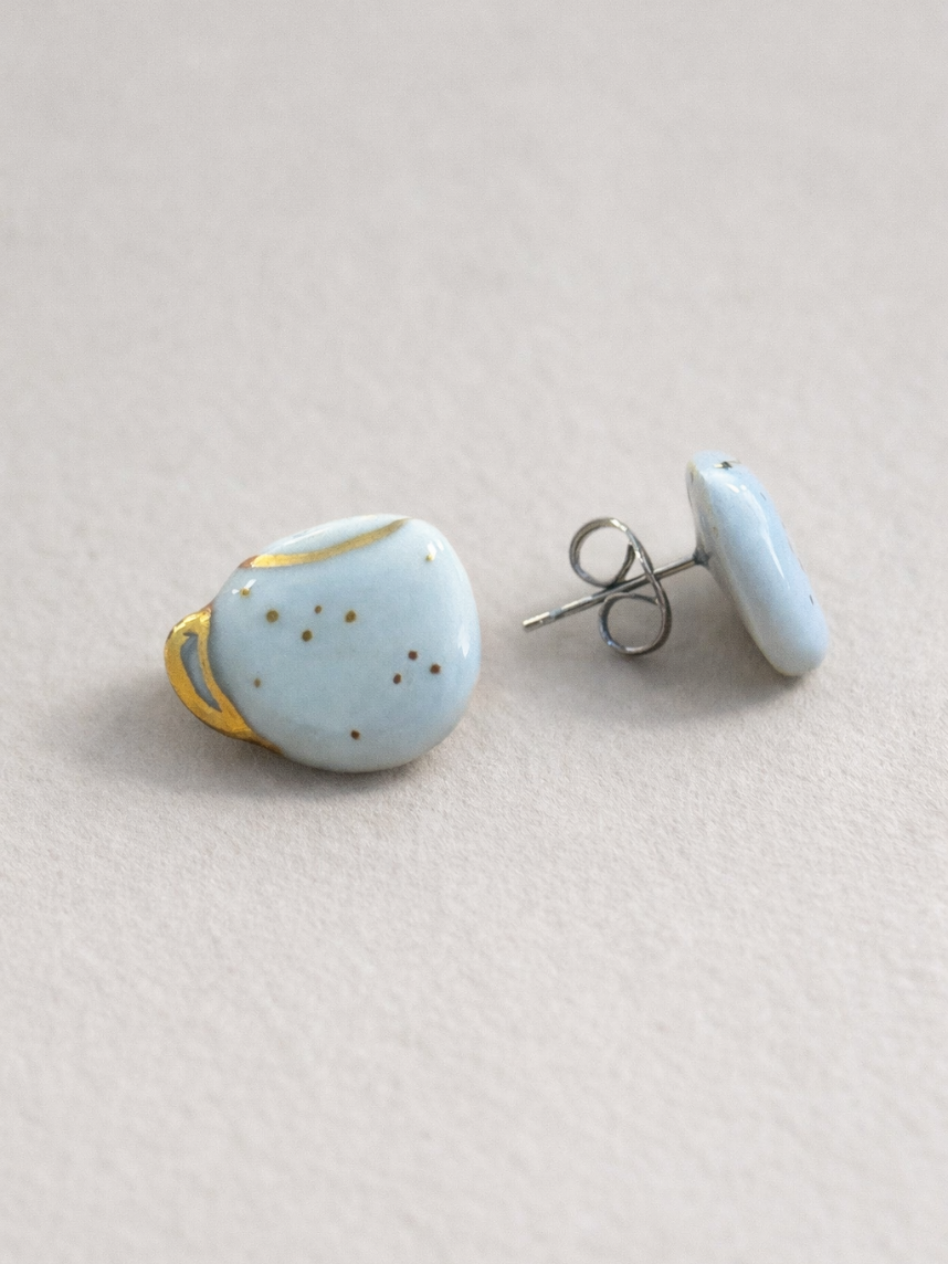 Серёжки-гвоздики «Кружечки в точку», фарфор, голубые