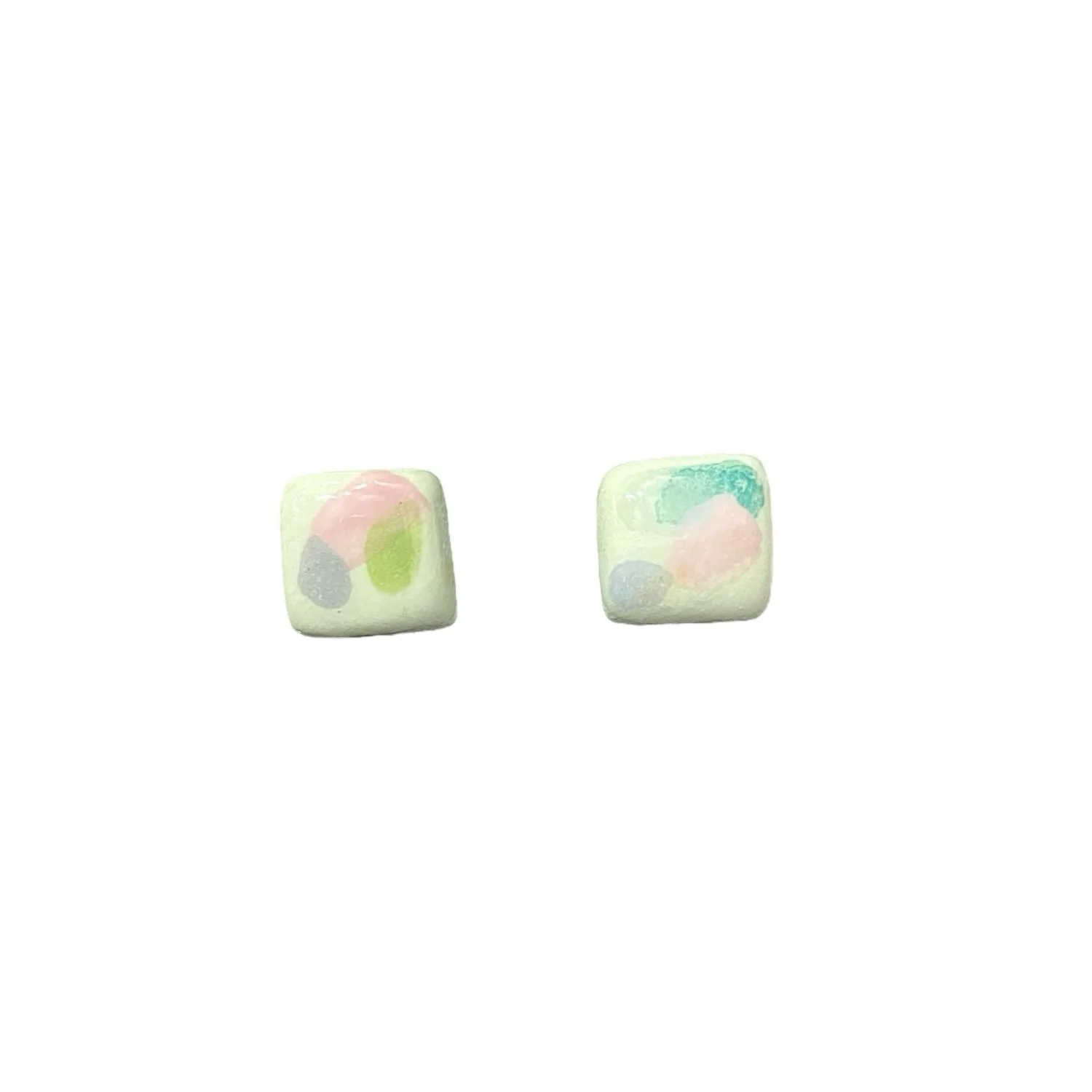 Серёжки-гвоздики Мария Гордеева квадратные с акварельными разводами, керамика, розово-зелёные